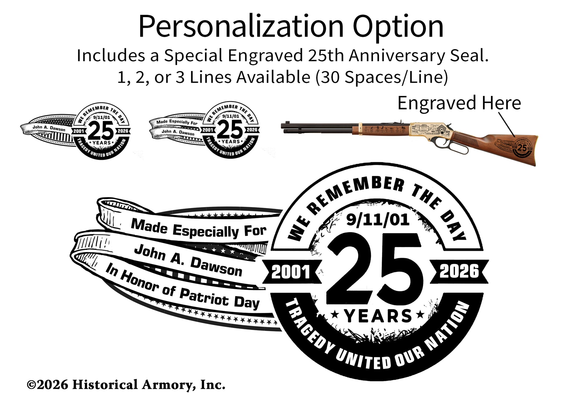 After the horrific attacks of September 11, 2001, Americans promised to “Never Forget” the day tragedy united our nation. In honor of the heroes and fallen of 9/11, Historical Armory, Inc. is extremely proud to present the 9/11 Never Forget Limited Edition. For a limited time, a special 25th Anniversary engraving will be included on every rifle. The heroic efforts of volunteers and first responders on 9/11 undoubtedly saved thousands of lives. On that dreadful day, 2,977 innocent lives were lost, and hundreds more have lost their lives since battling 9/11-related illnesses.