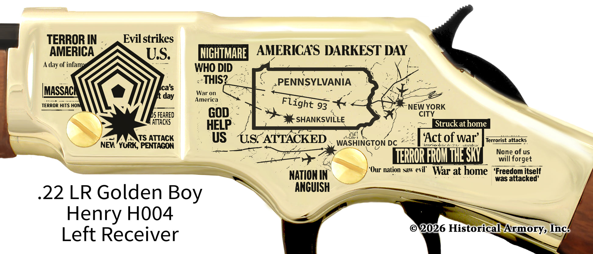 Renowned for their durability and solid construction, Henry rifles offer you a welcome shelter from the planned mechanical obsolescence so common in modern products these days. Well-maintained, they will continue to perform as designed for generations to come, perhaps even one day becoming a treasured family heirloom for your descendants. Start your own tradition of lasting permanence today with the 9/11 Never Forget Limited Edition, available only from Historical Armory!