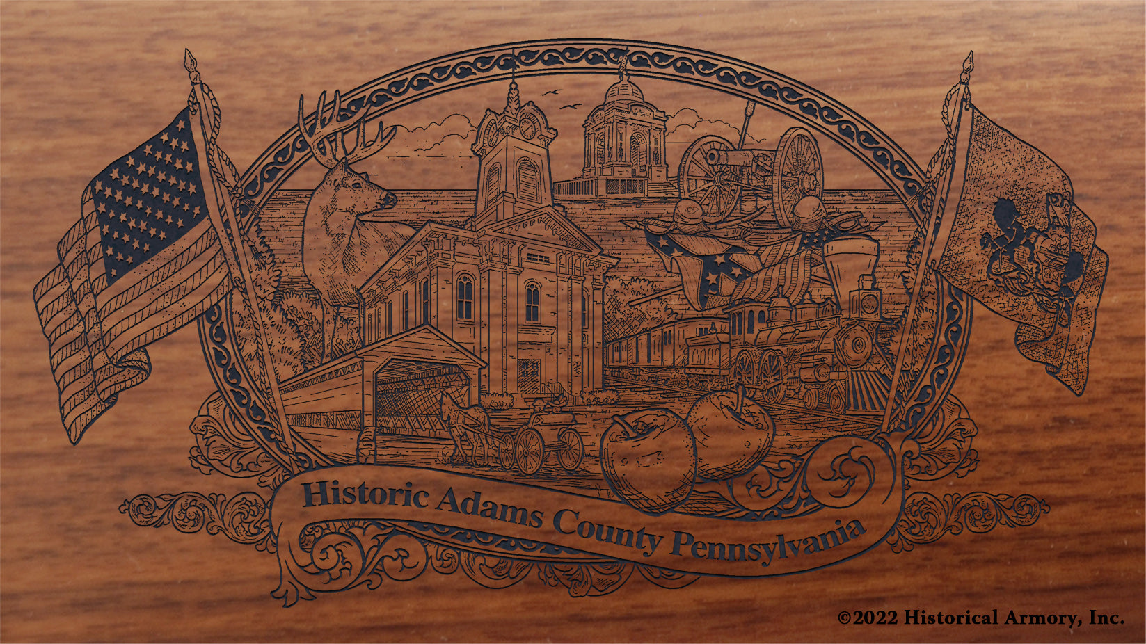 In honor of your county's rich historical legacy, Historical Armory is proud to present the Adams County Pennsylvania Limited Historical Edition Rifle. Produced on the affordable, American-made Henry rifles, the Adams County Pennsylvania Limited Historical Edition rifle combines meticulous research, original artwork, and finely detailed engraving to celebrate the history of Adams County. There will only be 25 Adams County Pennsylvania rifle sets ever produced by Historical Armory. Purchase each model separately or all available rifle models together for a complete limited edition set.