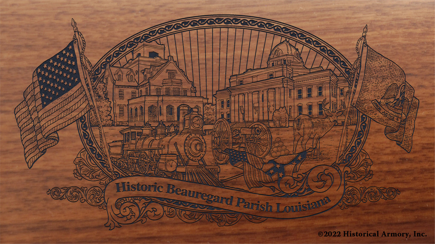 In honor of your parish's rich historical legacy, Historical Armory is proud to present the Beauregard Parish Louisiana Limited Historical Edition Rifle. Produced on the affordable, American-made Henry .22 LR rifle (Model H001 & H004) and .30-30 (Model H009BG), the Beauregard Parish Louisiana Limited Historical Edition rifle combines meticulous research, original artwork, and finely detailed engraving to celebrate the history of Beauregard Parish. There will only be 25 Beauregard Parish Louisiana rifle sets ever produced by Historical Armory. Purchase each model separately or all available rifle models together for a complete limited edition set.