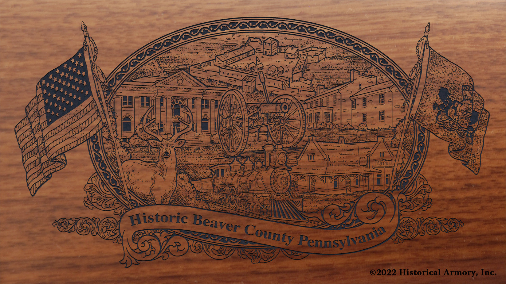 In honor of your county's rich historical legacy, Historical Armory is proud to present the Beaver County Pennsylvania Limited Historical Edition Rifle. Produced on the affordable, American-made Henry rifles, the Beaver County Pennsylvania Limited Historical Edition rifle combines meticulous research, original artwork, and finely detailed engraving to celebrate the history of Beaver County. There will only be 25 Beaver County Pennsylvania rifle sets ever produced by Historical Armory. Purchase each model separately or all available rifle models together for a complete limited edition set.