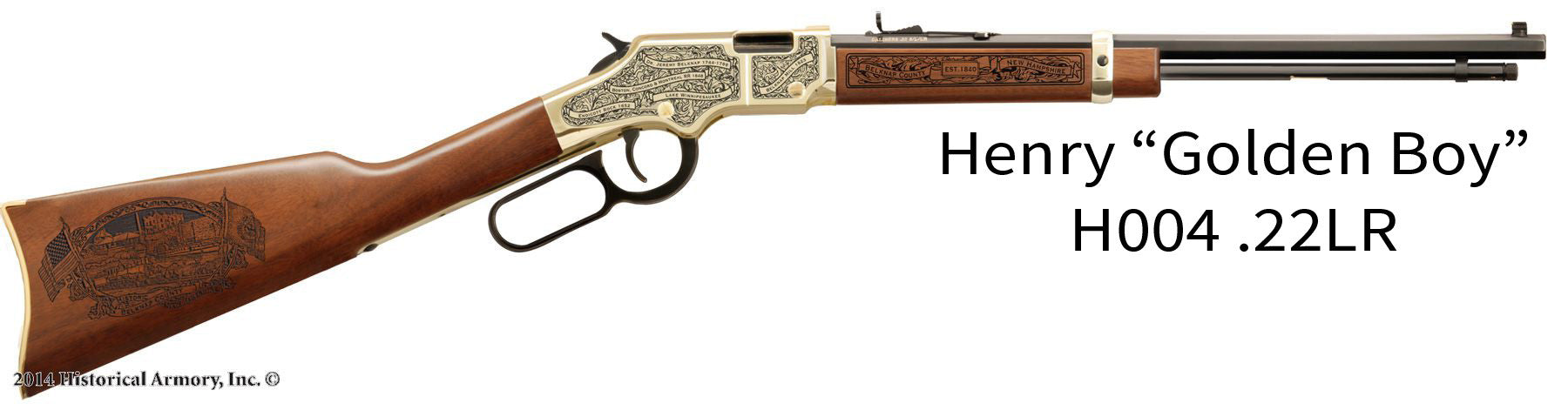 Renowned for their durability and solid construction, Henry rifles offer you a welcome shelter from the planned mechanical obsolescence so common in modern products these days. Well-maintained, they will continue to perform as designed for generations to come, perhaps even one day becoming a treasured family heirloom for your descendants. Start your own tradition of lasting permanence today with the Belknap County New Hampshire Engraved Rifle, available only from Historical Armory!