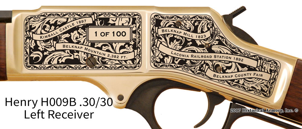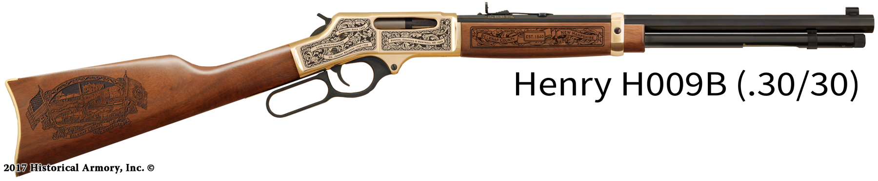 In honor of your county's rich historical legacy, Historical Armory is proud to present the Belknap County New Hampshire Limited Historical Edition Rifle. Produced on the affordable, American-made Henry .22 LR rifle (Model H001 & H004) and .30-30 (Model H009BG), the Belknap County New Hampshire Limited Historical Edition rifle combines meticulous research, original artwork, and finely detailed engraving to celebrate the history of Belknap County. There will only be 100 Belknap County New Hampshire rifle sets ever produced by Historical Armory. Purchase each model separately or all available rifle models together for a complete limited edition set.