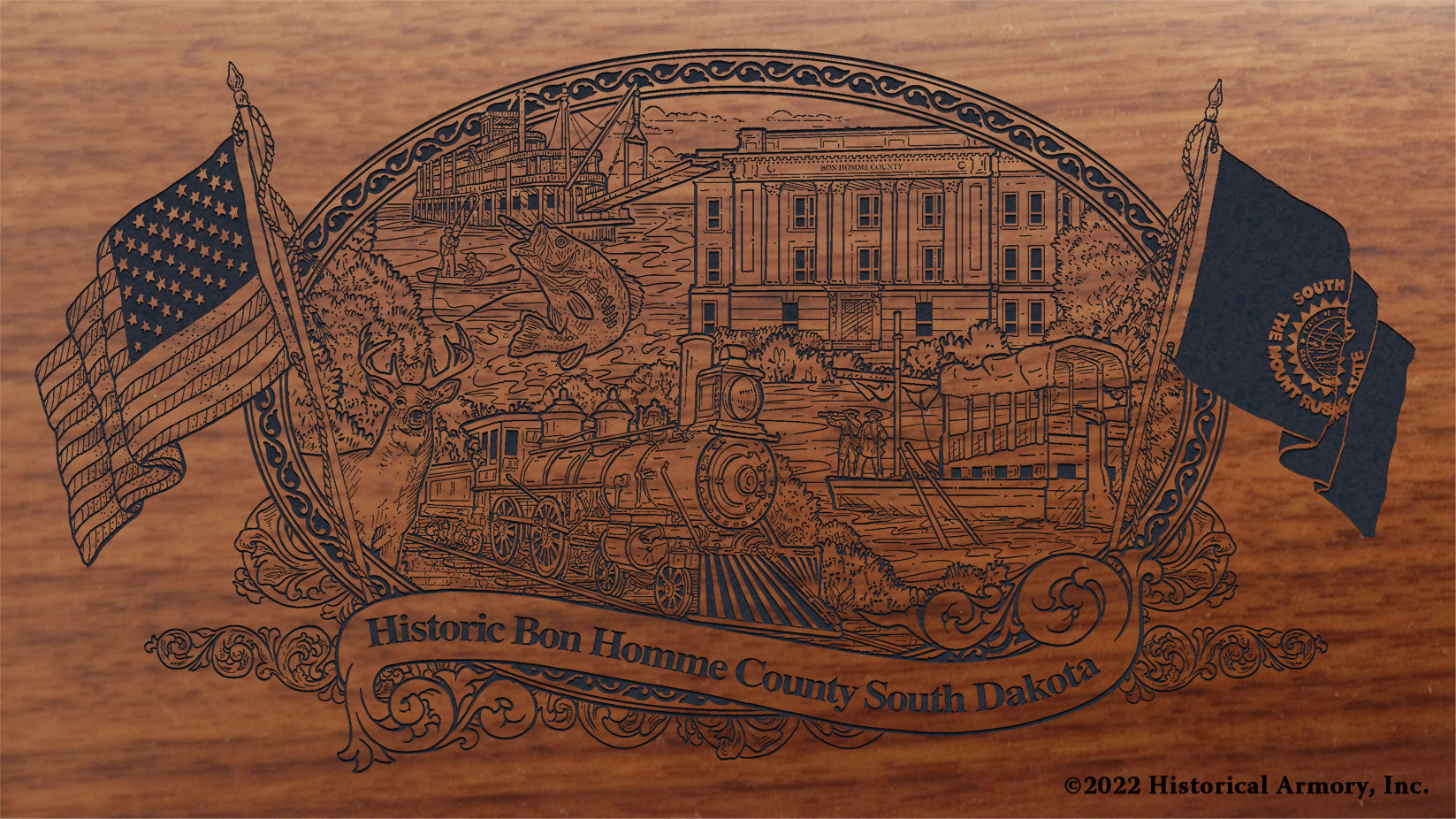 In honor of your county's rich historical legacy, Historical Armory is proud to present the Bon Homme County South Dakota Limited Historical Edition Rifle. Produced on the affordable, American-made Henry rifles, the Bon Homme County South Dakota Limited Historical Edition rifle combines meticulous research, original artwork, and finely detailed engraving to celebrate the history of Bon Homme County. There will only be 25 Bon Homme County South Dakota rifle sets ever produced by Historical Armory. Purchase each model separately or all available rifle models together for a complete limited edition set.