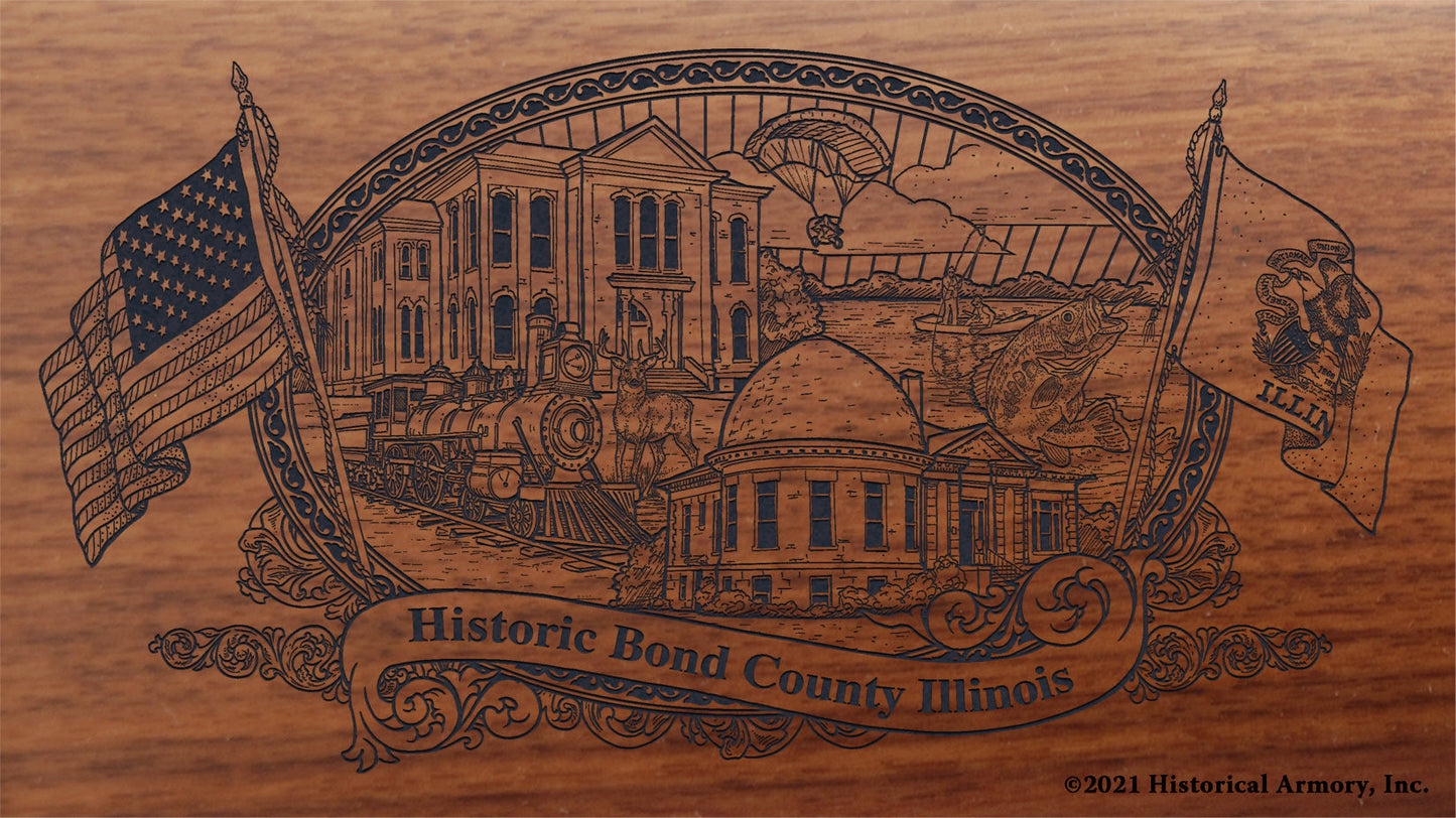 In honor of your county's rich historical legacy, Historical Armory is proud to present the Bond County Illinois Limited Historical Edition Rifle. Produced on the affordable, American-made Henry .22 LR rifle (Model H001 & H004) and .30-30 (Model H009BG), the Bond County Illinois Limited Historical Edition rifle combines meticulous research, original artwork, and finely detailed engraving to celebrate the history of Bond County. There will only be 25 Bond County Illinois rifle sets ever produced by Historical Armory. Purchase each model separately or all available rifle models together for a complete limited edition set.