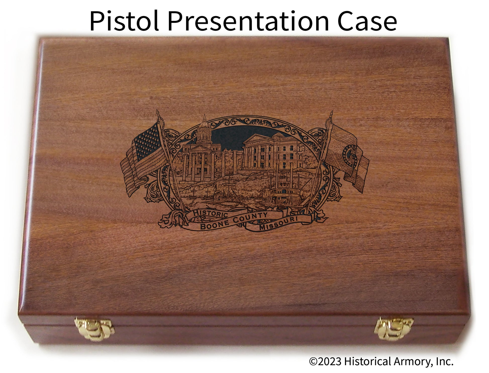In honor of your county's rich historical legacy, Historical Armory is proud to present the Boone County Missouri 1911 Limited Edition. This special edition combines meticulous research, original artwork, and finely detailed engraving to celebrate the history of Boone County Missouri. There will only be 50 Boone County Missouri pistols ever produced by Historical Armory!