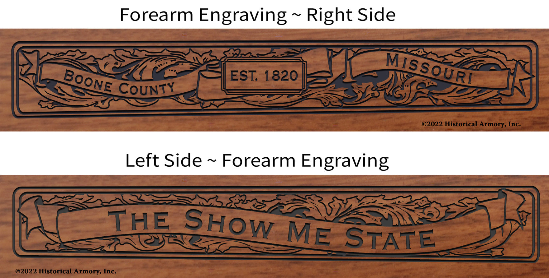 Renowned for their durability and solid construction, Henry rifles offer you a welcome shelter from the planned mechanical obsolescence so common in modern products these days. Well-maintained, they will continue to perform as designed for generations to come, perhaps even one day becoming a treasured family heirloom for your descendants. Start your own tradition of lasting permanence today with the Boone County Missouri Engraved Rifle, available only from Historical Armory!