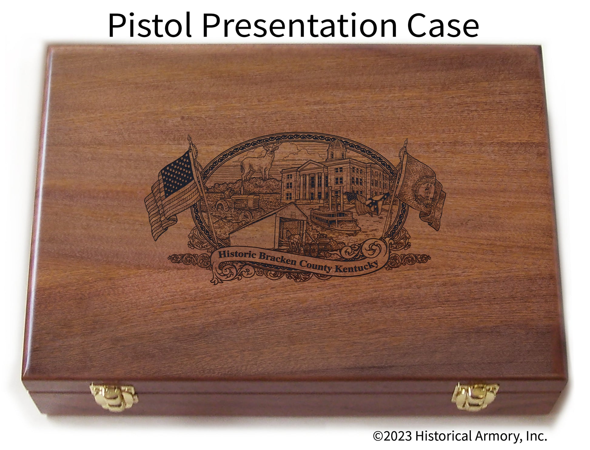 In honor of your county's rich historical legacy, Historical Armory is proud to present the Bracken County Kentucky 1911 Limited Edition. This special edition combines meticulous research, original artwork, and finely detailed engraving to celebrate the history of Bracken County Kentucky. There will only be 50 Bracken County Kentucky pistols ever produced by Historical Armory!