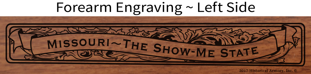 - Detailed engraving on both sides of the American walnut forearm, with the name and establishment date of your county on the right side and your state name and nickname on the left side.