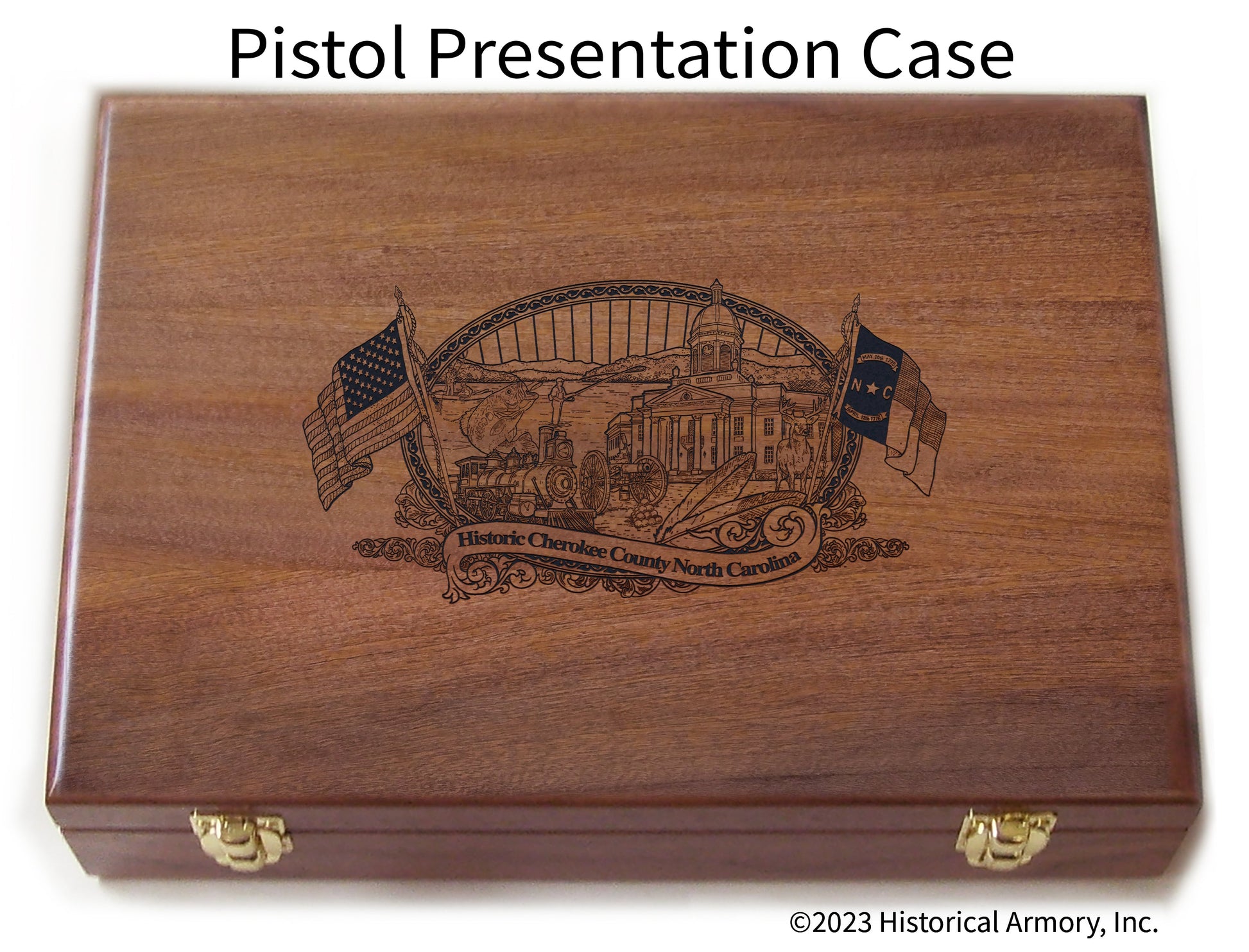 In honor of your county's rich historical legacy, Historical Armory is proud to present the Cherokee County North Carolina 1911 Limited Edition. This special edition combines meticulous research, original artwork, and finely detailed engraving to celebrate the history of Cherokee County North Carolina. There will only be 50 Cherokee County North Carolina pistols ever produced by Historical Armory!