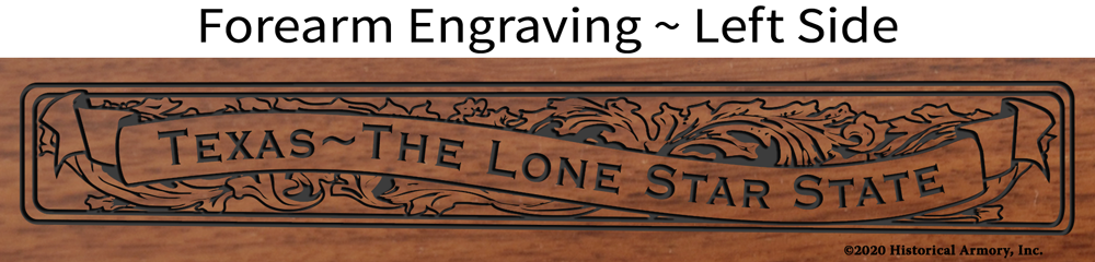 - Detailed engraving on both sides of the American walnut forearm, with the name and establishment date of your county on the right side and your state name and nickname on the left side.