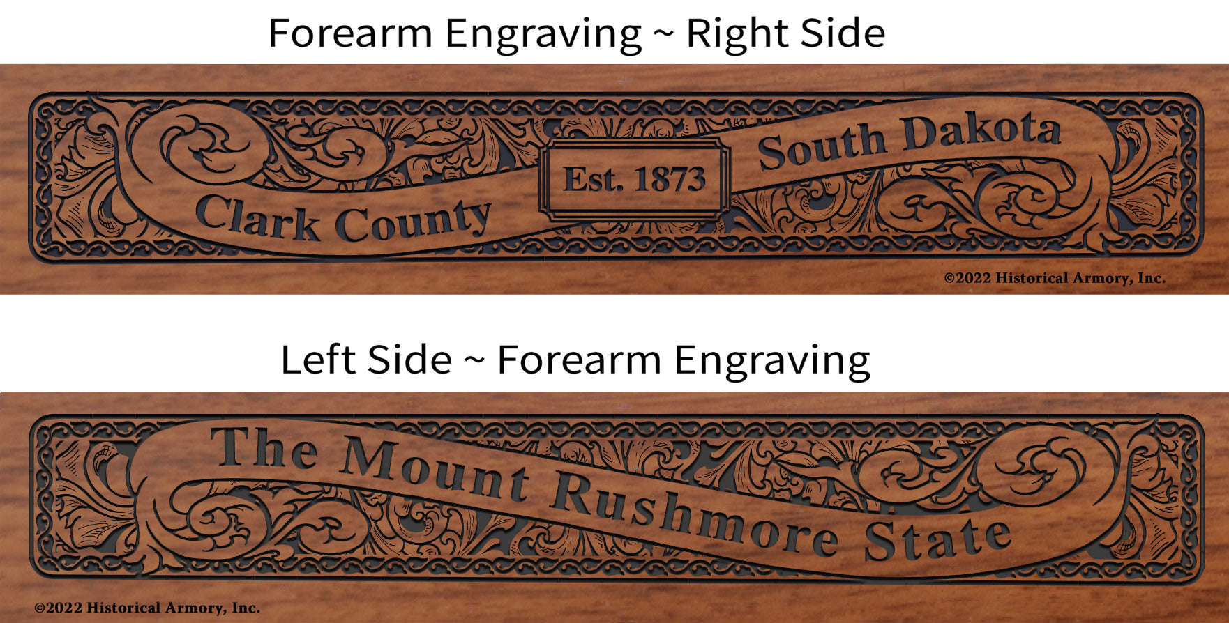 Renowned for their durability and solid construction, Henry rifles offer you a welcome shelter from the planned mechanical obsolescence so common in modern products these days. Well-maintained, they will continue to perform as designed for generations to come, perhaps even one day becoming a treasured family heirloom for your descendants. Start your own tradition of lasting permanence today with the Clark County South Dakota Engraved Rifle, available only from Historical Armory!