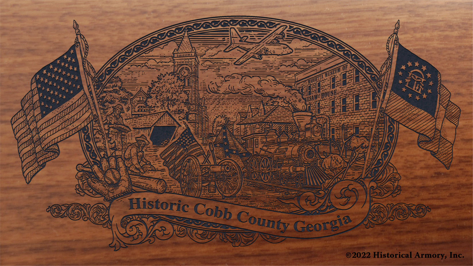 In honor of your county's rich historical legacy, Historical Armory is proud to present the Cobb County Georgia Limited Historical Edition Rifle. Produced on the affordable, American-made Henry .22 LR rifle (Model H001 & H004) and .30-30 (Model H009BG), the Cobb County Georgia Limited Historical Edition rifle combines meticulous research, original artwork, and finely detailed engraving to celebrate the history of Cobb County. There will only be 50 Cobb County Georgia rifle sets ever produced by Historical Armory. Purchase each model separately or all available rifle models together for a complete limited edition set.