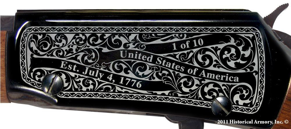 - Detailed engraving on both sides of the American walnut forearm, with the name and establishment date of your county on the right side and your state name and nickname on the left side.