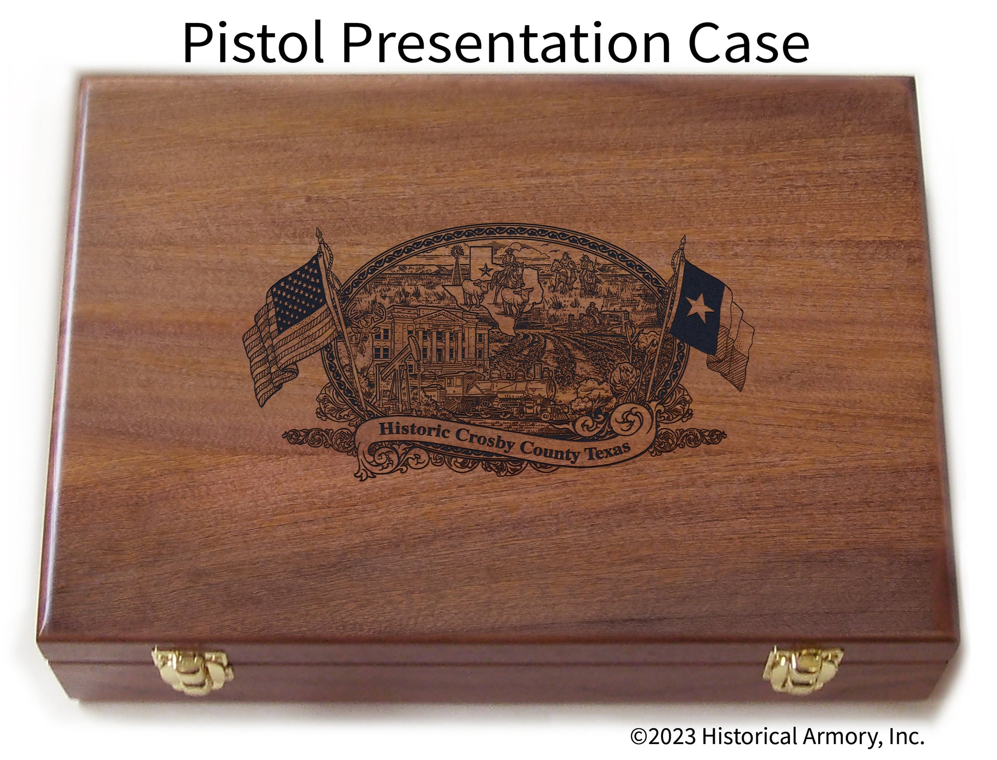 In honor of your county's rich historical legacy, Historical Armory is proud to present the Crosby County Texas 1911 Limited Edition. This special edition combines meticulous research, original artwork, and finely detailed engraving to celebrate the history of Crosby County Texas. There will only be 50 Crosby County Texas pistols ever produced by Historical Armory!
