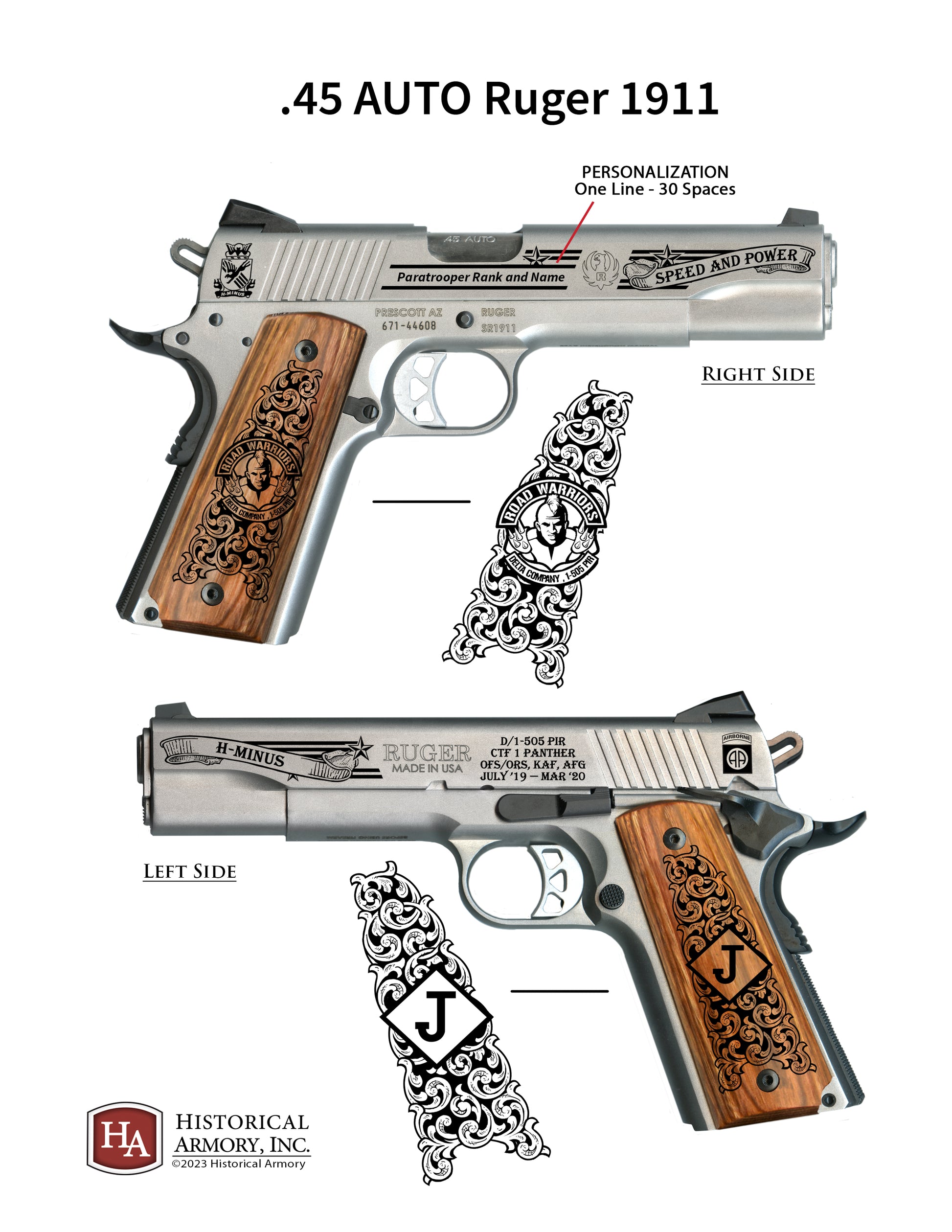 Each Road Warriors D/1-505 PIR; 82nd ABN Edition is personalized on either the slide or receiver at no additional cost. In the area above, type PRECISELY. Take the time to review your entry for accuracy.