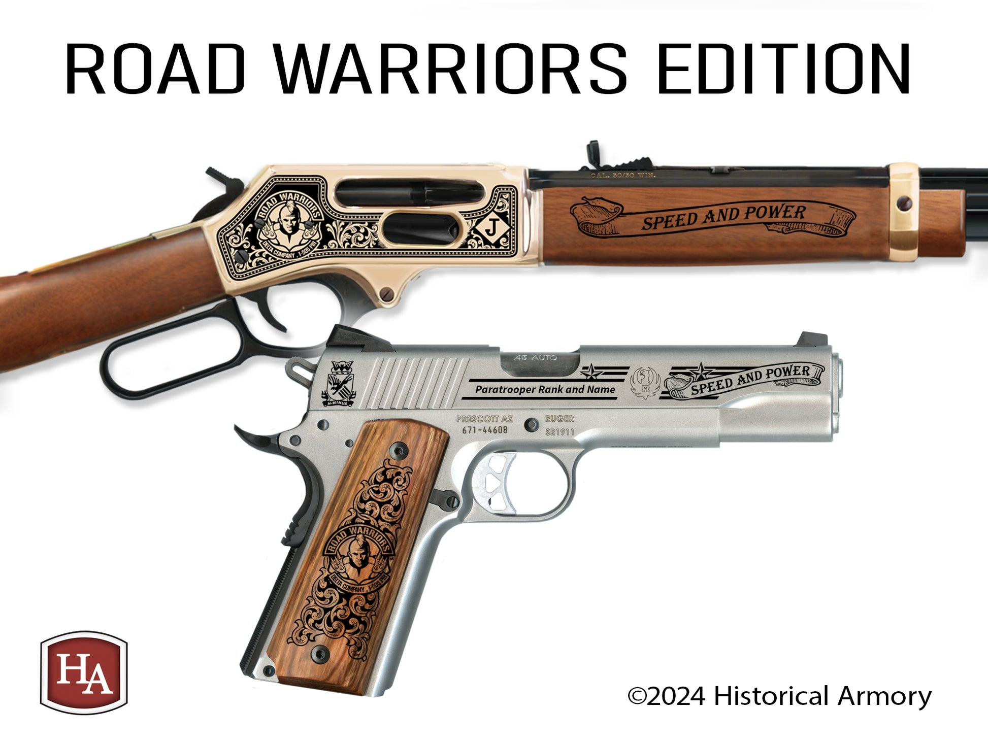 In honor of you who protect our nation and serve with pride, Historical Armory, Inc. is extremely proud to present the Road Warriors D/1-505 PIR; 82nd ABN Edition. This edition is available on the Henry H009BG (.30-30 brass side gate); and Ruger SR1911 6700 (.45 Auto).