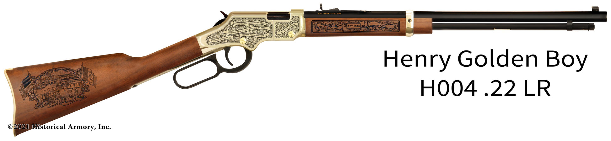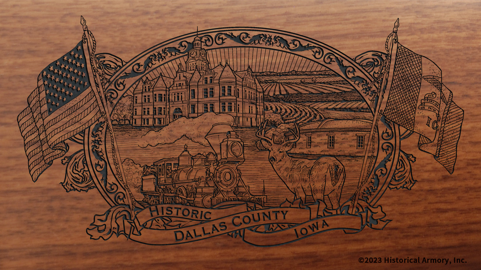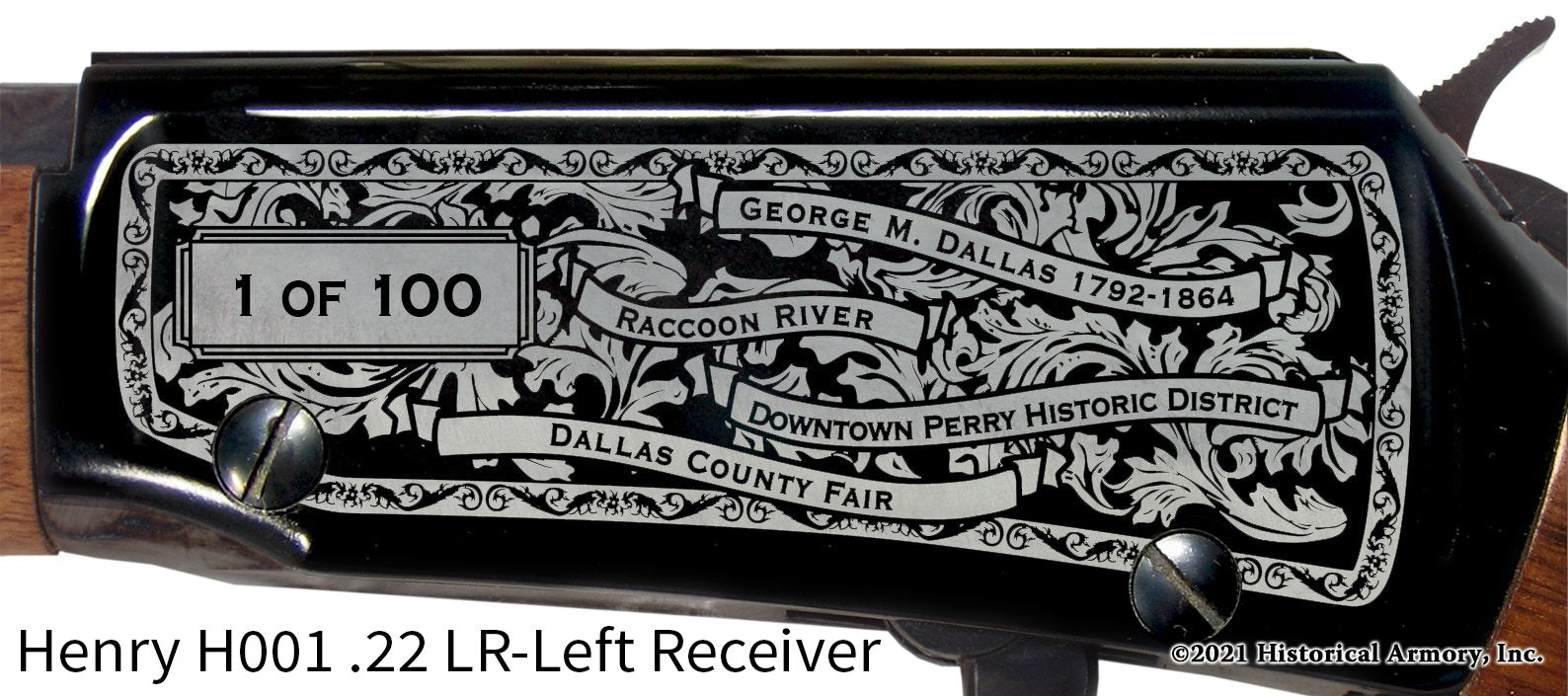 In honor of your county's rich historical legacy, Historical Armory is proud to present the Dallas County Iowa Limited Historical Edition Rifle! Produced on the affordable, American-made Henry .22 LR rifle (Model H001 & H004) and .30-30 (Model H009BG), the Dallas County Iowa Limited Historical Edition rifle combines meticulous research, original artwork, and finely detailed engraving to celebrate the history of Dallas County. There will only be 100 Dallas County Iowa rifles sets ever produced by Historical Armory. Purchase each model separately or all available rifle models together for a complete limited edition set.