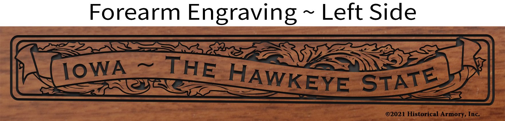 - Detailed engraving on both sides of the American walnut forearm, with the name and establishment date of your county on the right side and your state name and nickname on the left side.