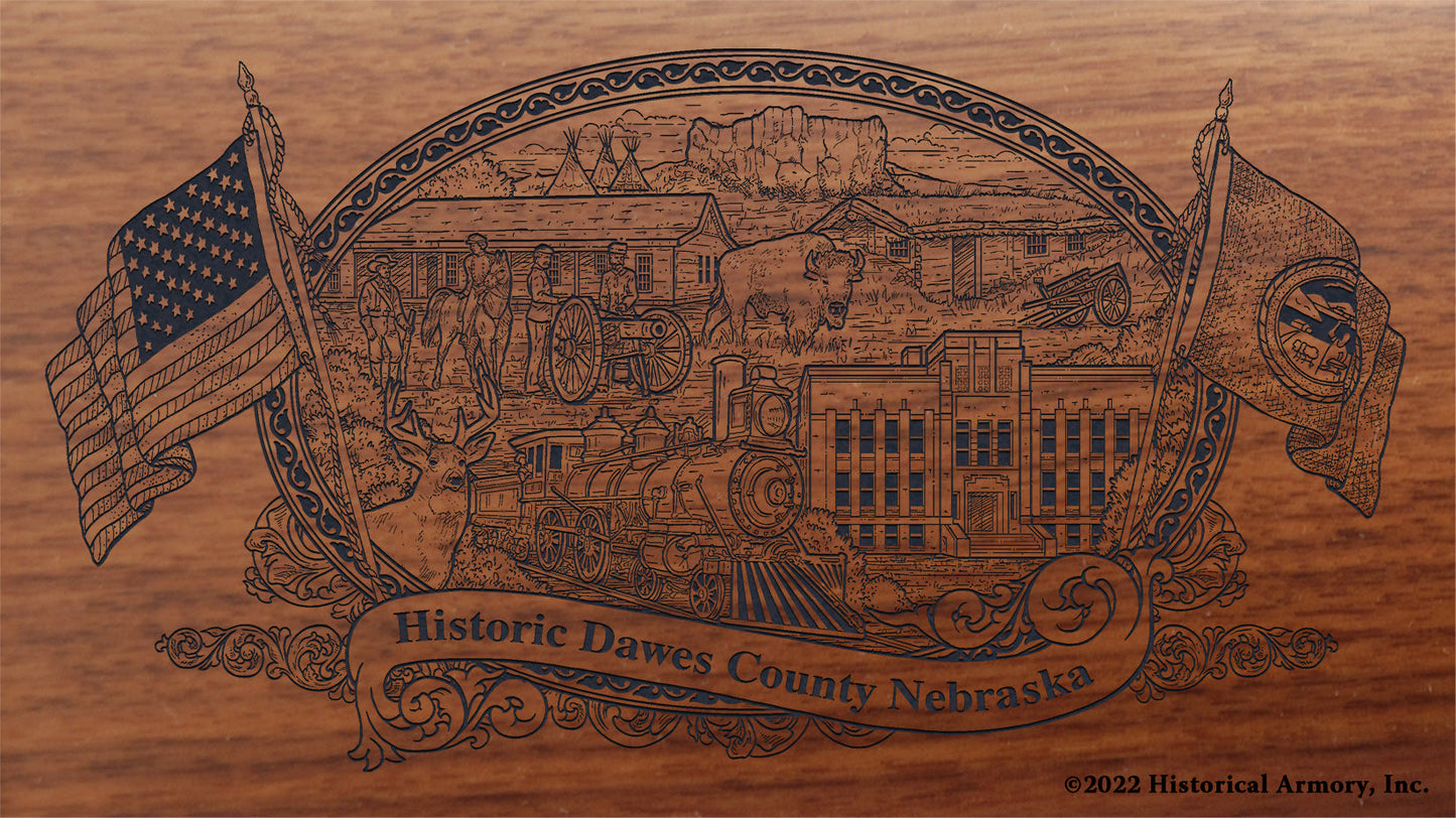 In honor of your county's rich historical legacy, Historical Armory is proud to present the Dawes County Nebraska Limited Historical Edition Rifle. Produced on the affordable, American-made Henry rifles, the Dawes County Nebraska Limited Historical Edition rifle combines meticulous research, original artwork, and finely detailed engraving to celebrate the history of Dawes County. There will only be 50 Dawes County Nebraska rifle sets ever produced by Historical Armory. Purchase each model separately or all available rifle models together for a complete limited edition set.