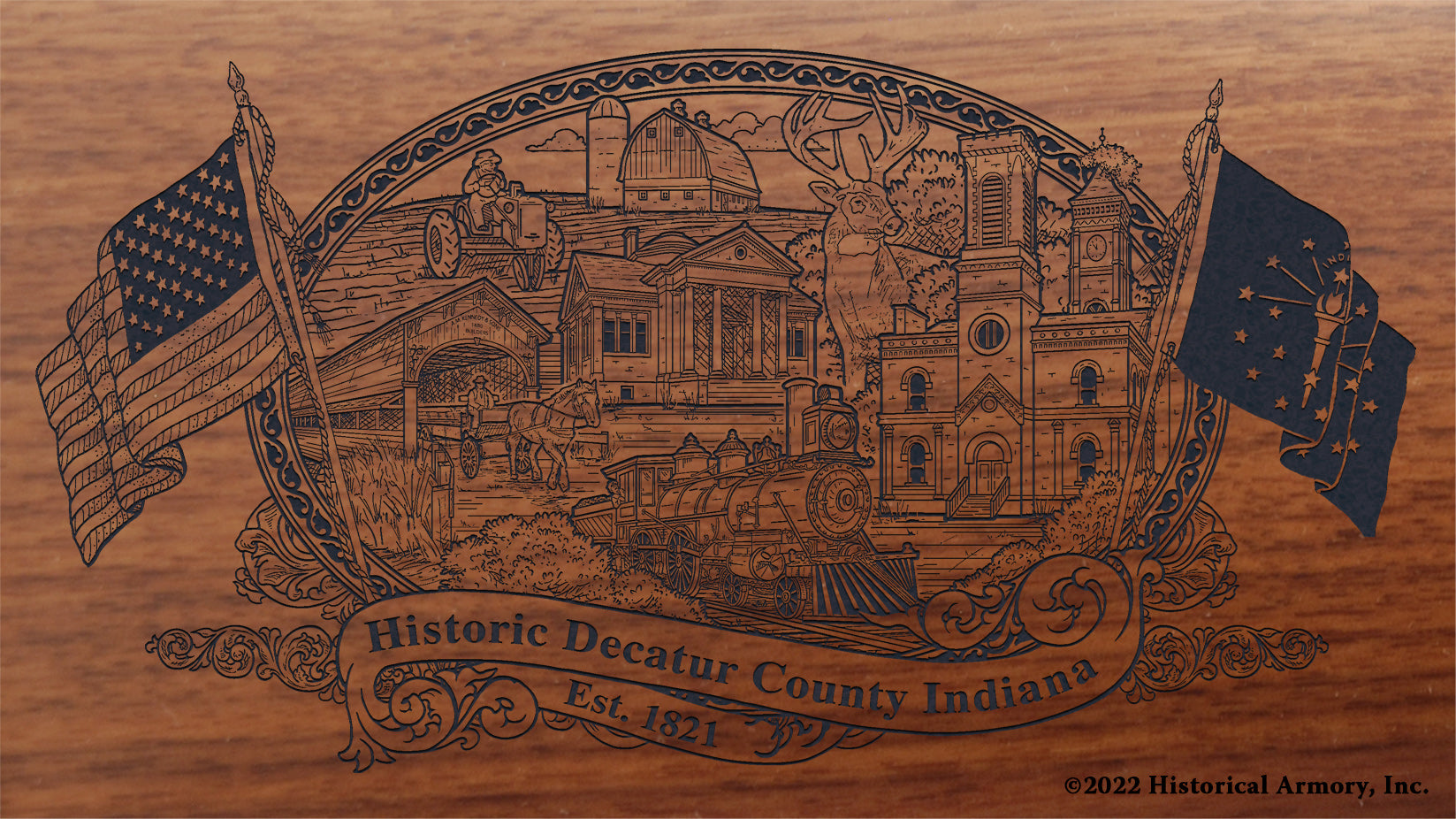 In honor of your county's rich historical legacy, Historical Armory is proud to present the Decatur County Indiana Limited Historical Edition Rifle. Produced on the affordable, American-made Henry rifles, the Decatur County Indiana Limited Historical Edition rifle combines meticulous research, original artwork, and finely detailed engraving to celebrate the history of Decatur County. There will only be 25 Decatur County Indiana rifle sets ever produced by Historical Armory. Purchase each model separately or all available rifle models together for a complete limited edition set.