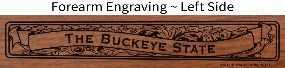 - Detailed engraving on both sides of the American walnut forearm, with the name and establishment date of your county on the right side and your state name and nickname on the left side.