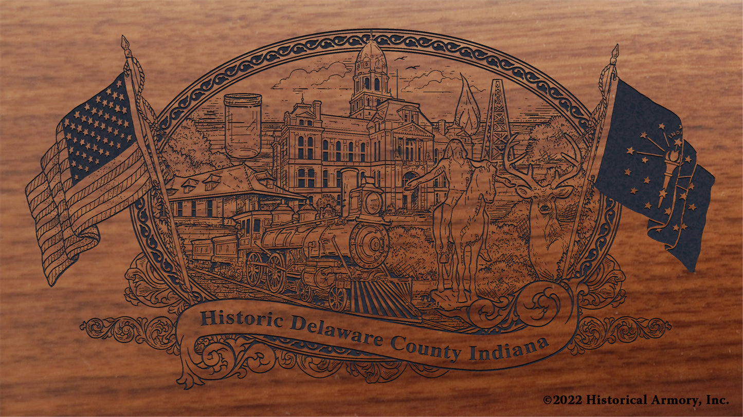 In honor of your county's rich historical legacy, Historical Armory is proud to present the Delaware County Indiana Limited Historical Edition Rifle. Produced on the affordable, American-made Henry rifles, the Delaware County Indiana Limited Historical Edition rifle combines meticulous research, original artwork, and finely detailed engraving to celebrate the history of Delaware County. There will only be 25 Delaware County Indiana rifle sets ever produced by Historical Armory. Purchase each model separately or all available rifle models together for a complete limited edition set.