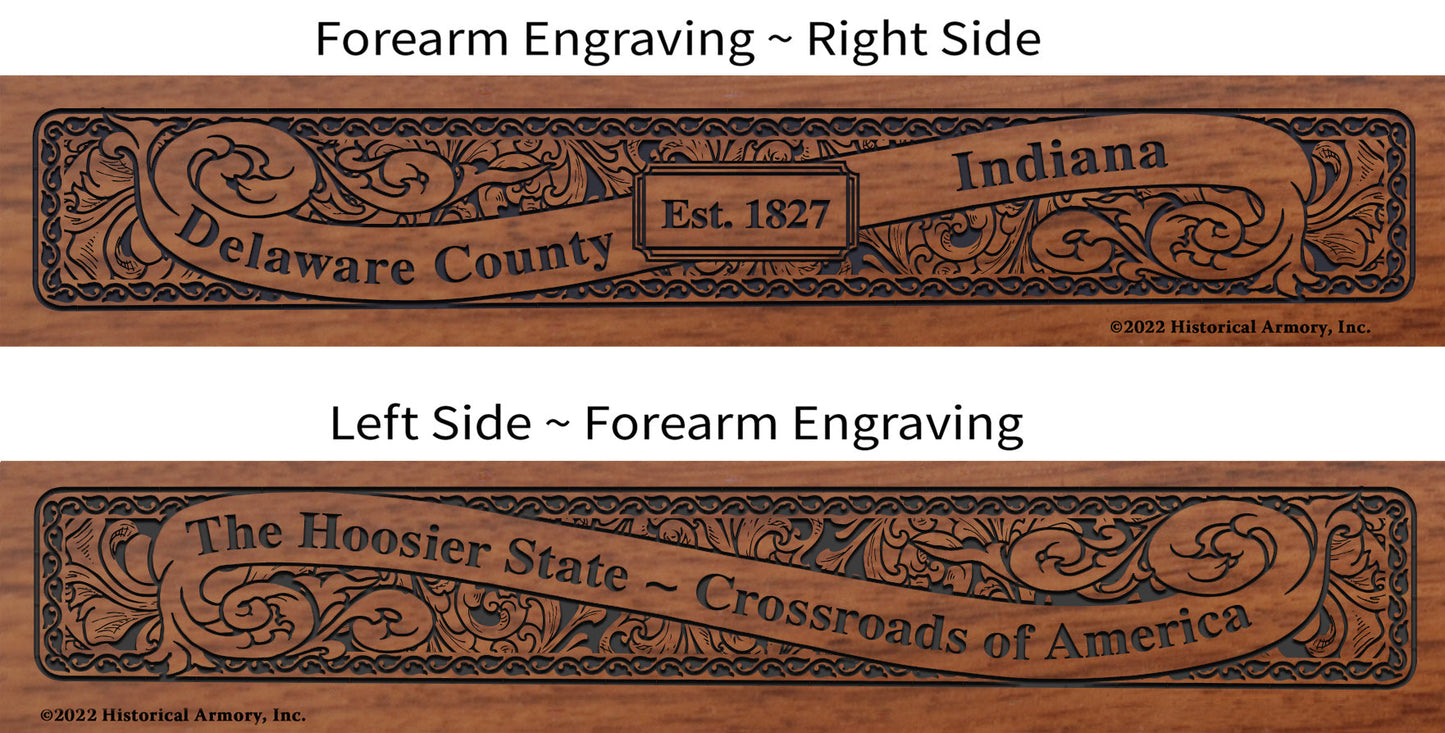 Renowned for their durability and solid construction, Henry rifles offer you a welcome shelter from the planned mechanical obsolescence so common in modern products these days. Well-maintained, they will continue to perform as designed for generations to come, perhaps even one day becoming a treasured family heirloom for your descendants. Start your own tradition of lasting permanence today with the Delaware County Indiana Engraved Rifle, available only from Historical Armory!