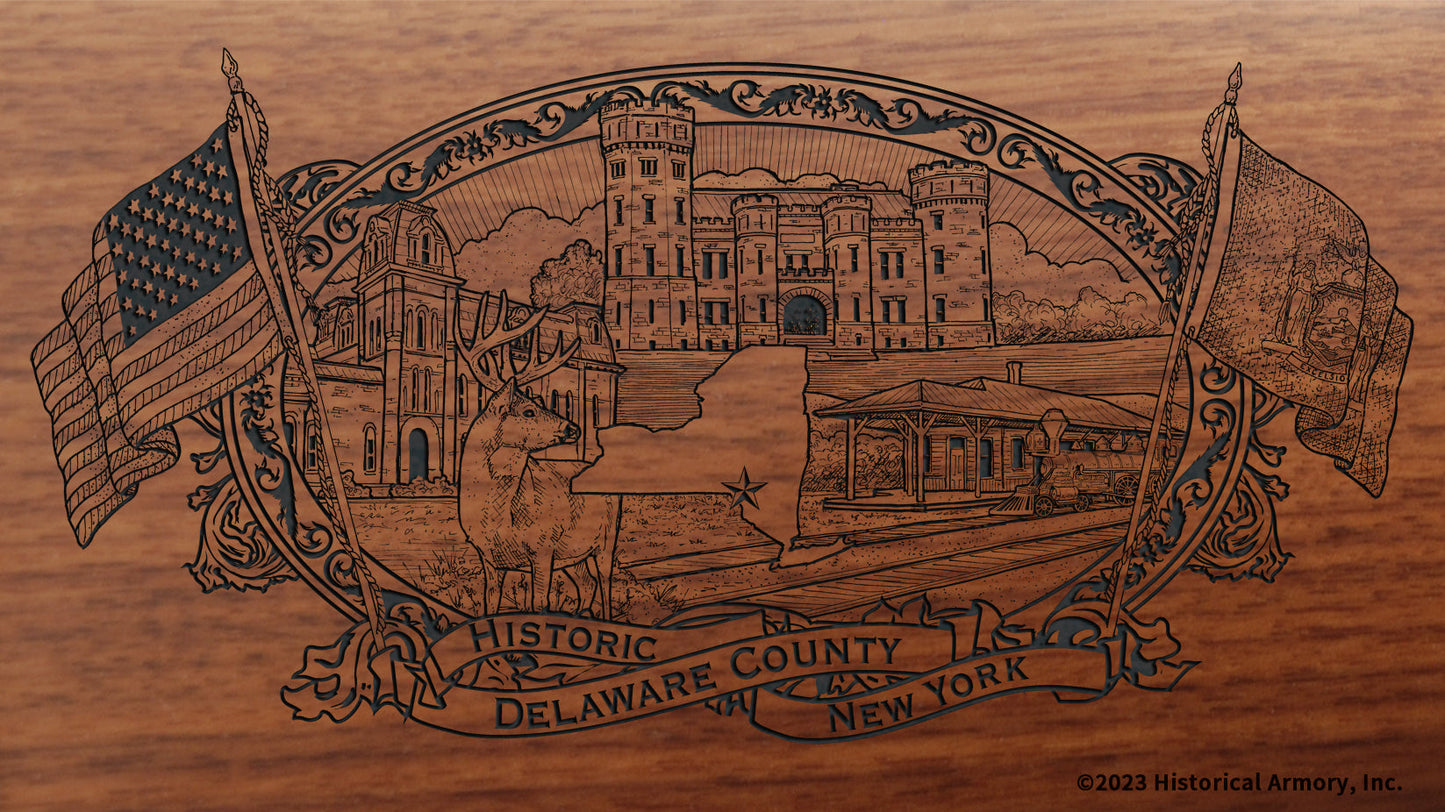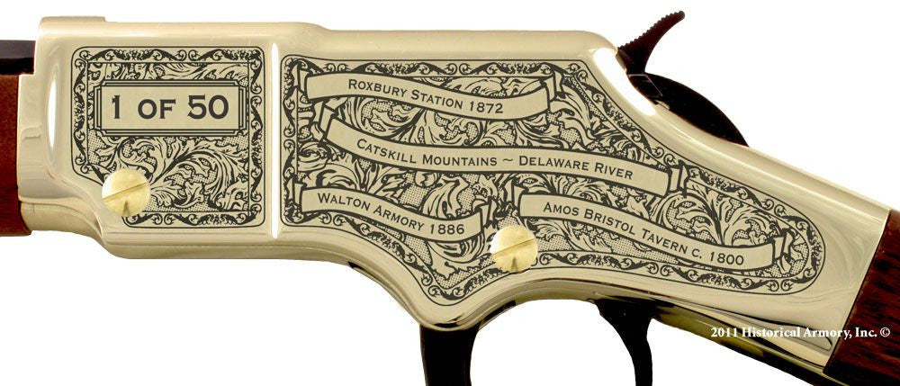 In honor of your county's rich historical legacy, Historical Armory is proud to present the Delaware County New York Limited Historical Edition Rifle. Produced on the affordable, American-made Henry .22 LR rifle (Model H001 & H004) and .30-30 (Model H009BG, not pictured), the Delaware County New York Limited Historical Edition rifle combines meticulous research, original artwork, and finely detailed engraving to celebrate the history of Delaware County. There will only be 50 Delaware County New York rifle sets ever produced by Historical Armory. Purchase each model separately or all available rifle models together for a complete limited edition set.