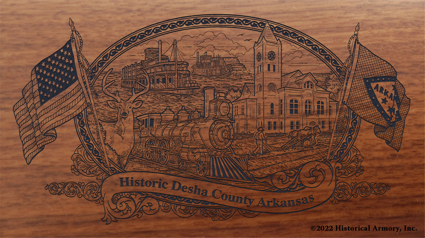 In honor of your county's rich historical legacy, Historical Armory is proud to present the Desha County Arkansas Limited Historical Edition Rifle. Produced on the affordable, American-made Henry rifles, the Desha County Arkansas Limited Historical Edition rifle combines meticulous research, original artwork, and finely detailed engraving to celebrate the history of Desha County. There will only be 50 Desha County Arkansas rifle sets ever produced by Historical Armory. Purchase each model separately or all available rifle models together for a complete limited edition set.
