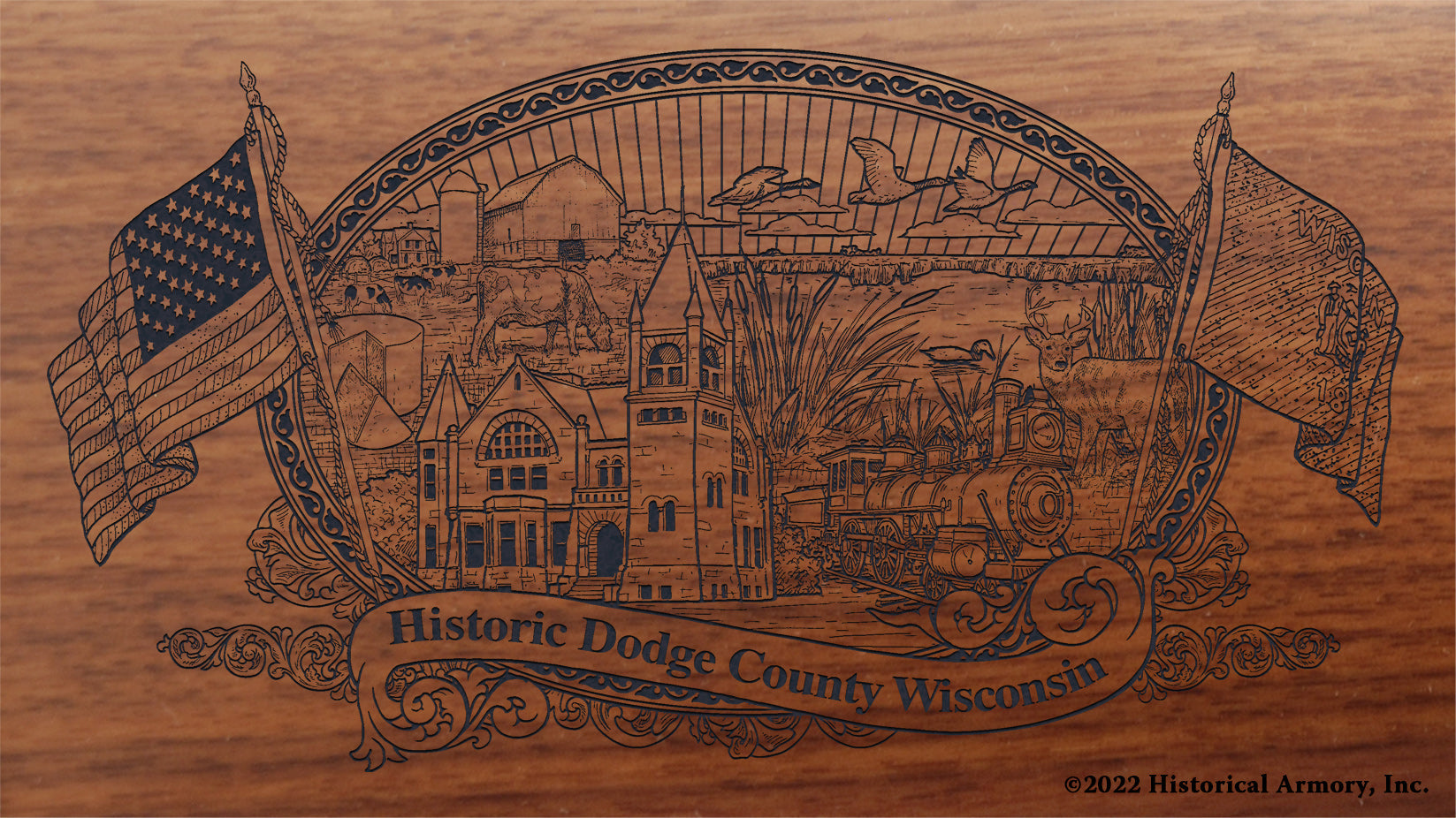 In honor of your county's rich historical legacy, Historical Armory is proud to present the Dodge County Wisconsin Limited Historical Edition Rifle. Produced on the affordable, American-made Henry rifles, the Dodge County Wisconsin Limited Historical Edition rifle combines meticulous research, original artwork, and finely detailed engraving to celebrate the history of Dodge County. There will only be 25 Dodge County Wisconsin rifle sets ever produced by Historical Armory. Purchase each model separately or all available rifle models together for a complete limited edition set.