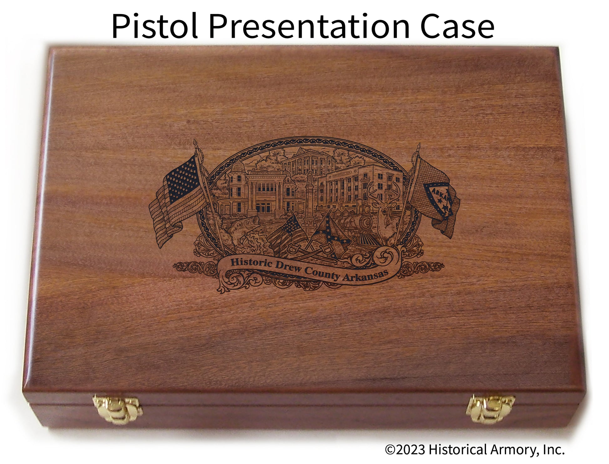 In honor of your county's rich historical legacy, Historical Armory is proud to present the Drew County Arkansas 1911 Limited Edition. This special edition combines meticulous research, original artwork, and finely detailed engraving to celebrate the history of Drew County Arkansas. There will only be 50 Drew County Arkansas pistols ever produced by Historical Armory!