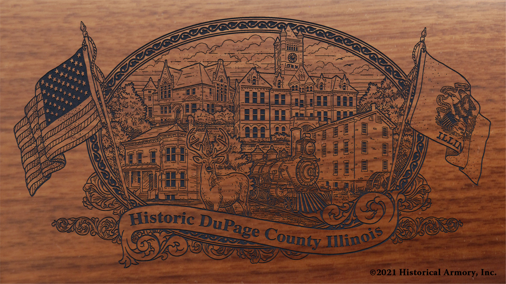 In honor of your county's rich historical legacy, Historical Armory is proud to present the DuPage County Illinois Limited Historical Edition Rifle. Produced on the affordable, American-made Henry .22 LR rifle (Model H001 & H004) and .30-30 (Model H009BG), the DuPage County Illinois Limited Historical Edition rifle combines meticulous research, original artwork, and finely detailed engraving to celebrate the history of DuPage County. There will only be 25 DuPage County Illinois rifle sets ever produced by Historical Armory. Purchase each model separately or all available rifle models together for a complete limited edition set.