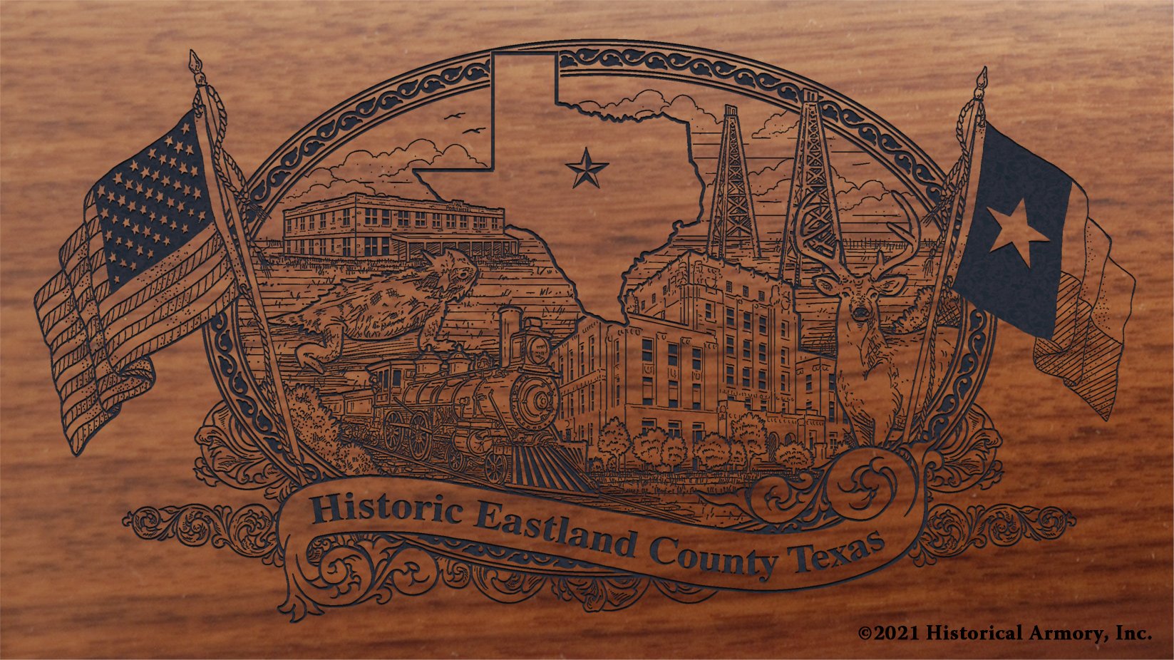 In honor of your county's rich historical legacy, Historical Armory is proud to present the Eastland County Texas Limited Historical Edition Rifle. Produced on the affordable, American-made Henry .22 LR rifle (Model H001 & H004) and .30-30 (Model H009BG), the Eastland County Texas Limited Historical Edition rifle combines meticulous research, original artwork, and finely detailed engraving to celebrate the history of Eastland County. There will only be 50 Eastland County Texas rifle sets ever produced by Historical Armory. Purchase each model separately or all available rifle models together for a complete limited edition set.