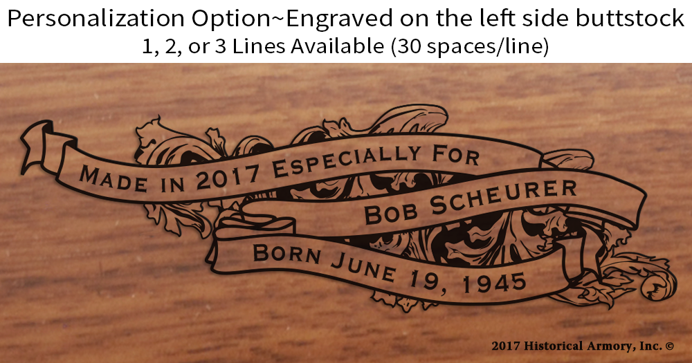 - Detailed engraving on both sides of the American walnut forearm, with the name and establishment date of your county on the right side and your state name and nickname on the left side.