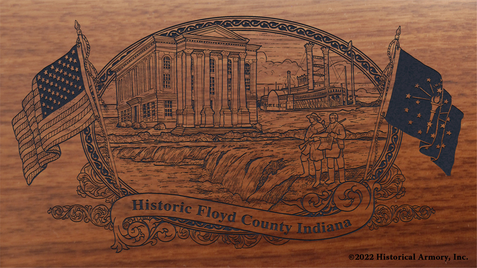 In honor of your county's rich historical legacy, Historical Armory is proud to present the Floyd County Indiana Limited Historical Edition Rifle. Produced on the affordable, American-made Henry rifles, the Floyd County Indiana Limited Historical Edition rifle combines meticulous research, original artwork, and finely detailed engraving to celebrate the history of Floyd County. There will only be 25 Floyd County Indiana rifle sets ever produced by Historical Armory. Purchase each model separately or all available rifle models together for a complete limited edition set.