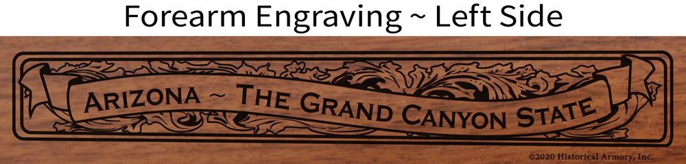 - Detailed engraving on both sides of the American walnut forearm, with the name and establishment date of your county on the right side and your state name and nickname on the left side.