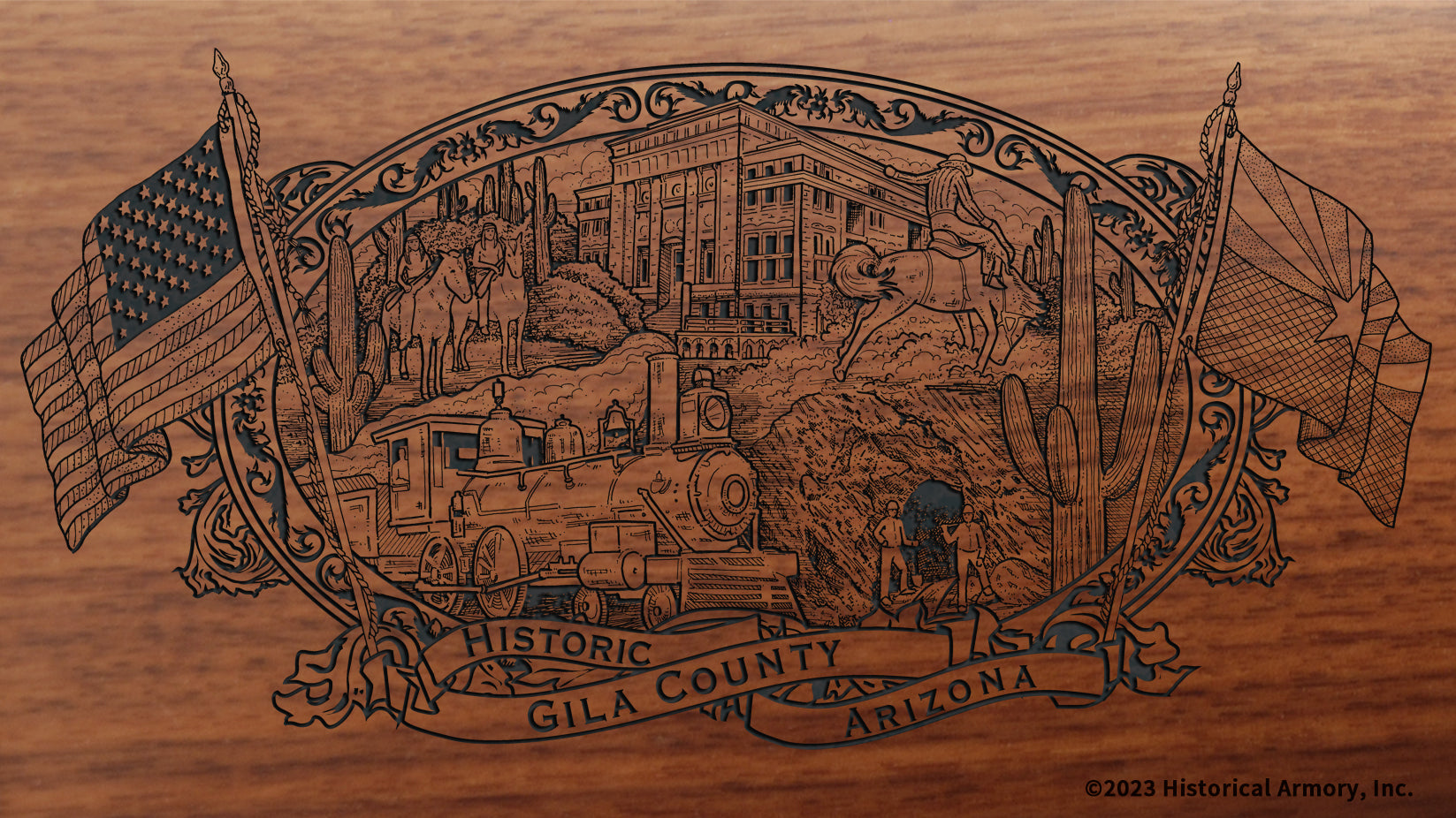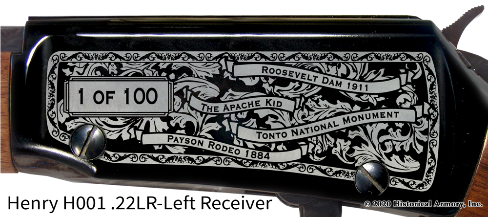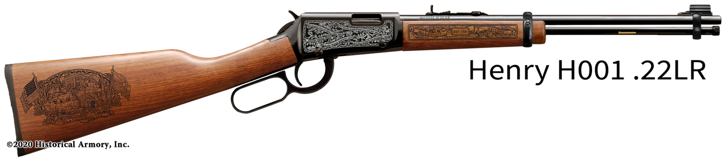 In honor of your county's rich historical legacy, Historical Armory is proud to present the Gila County Arizona Limited Historical Edition Rifle. Produced on the affordable, American-made Henry .22 LR rifle (Model H001 & H004) and .30-30 (Model H009BG), the Gila County Arizona Limited Historical Edition rifle combines meticulous research, original artwork, and finely detailed engraving to celebrate the history of Gila County. There will only be 100 Gila County Arizona rifle sets ever produced by Historical Armory. Purchase each model separately or all available rifle models together for a complete limited edition set.