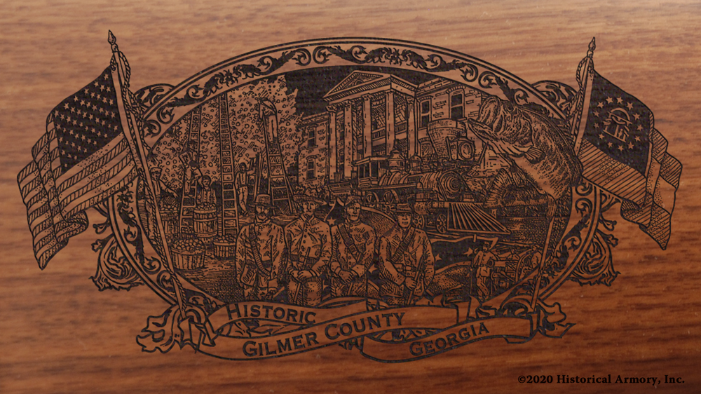 In honor of your county's rich historical legacy, Historical Armory is proud to present the Gilmer County Georgia Limited Historical Edition Rifle. Produced on the affordable, American-made Henry .22 LR rifle (Model H001 & H004) and .30-30 (Model H009BG), the Gilmer County Georgia Limited Historical Edition rifle combines meticulous research, original artwork, and finely detailed engraving to celebrate the history of Gilmer County. There will only be 100 Gilmer County Georgia rifle sets ever produced by Historical Armory. Purchase each model separately or all available rifle models together for a complete limited edition set.