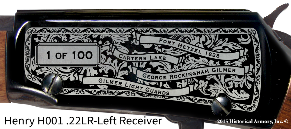 Renowned for their durability and solid construction, Henry rifles offer you a welcome shelter from the planned mechanical obsolescence so common in modern products these days. Well-maintained, they will continue to perform as designed for generations to come, perhaps even one day becoming a treasured family heirloom for your descendants. Start your own tradition of lasting permanence today with the Gilmer County Georgia Engraved Rifle, available only from Historical Armory!