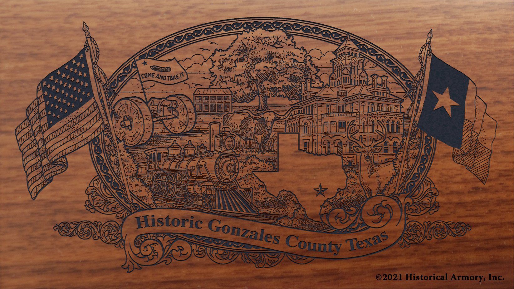 In honor of your county's rich historical legacy, Historical Armory is proud to present the Gonzales County Texas Limited Historical Edition Rifle. Produced on the affordable, American-made Henry .22 LR rifle (Model H001 & H004) and .30-30 (Model H009BG), the Gonzales County Texas Limited Historical Edition rifle combines meticulous research, original artwork, and finely detailed engraving to celebrate the history of Gonzales County. There will only be 25 Gonzales County Texas rifle sets ever produced by Historical Armory. Purchase each model separately or all available rifle models together for a complete limited edition set.