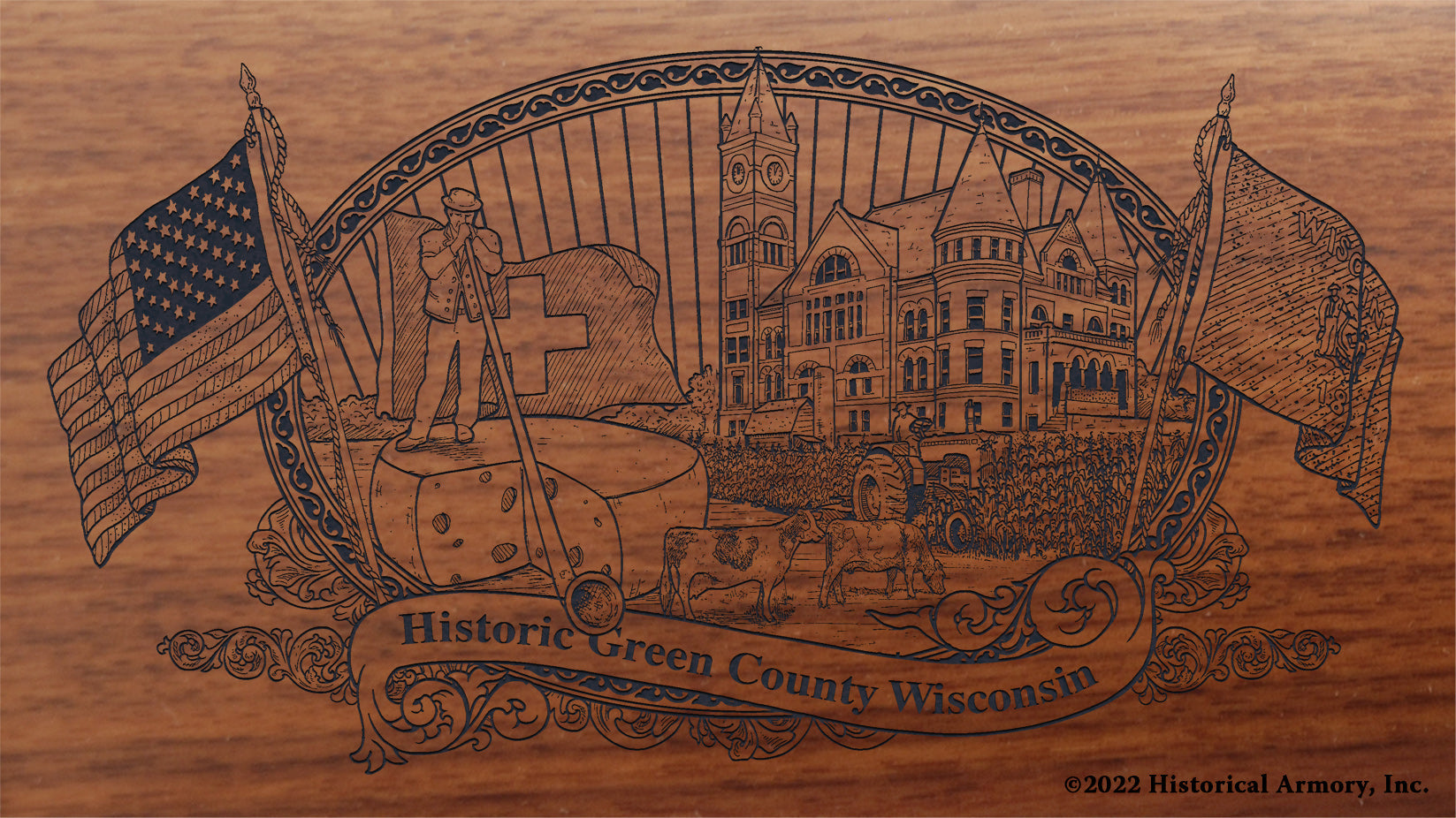 In honor of your county's rich historical legacy, Historical Armory is proud to present the Green County Wisconsin Limited Historical Edition Rifle. Produced on the affordable, American-made Henry rifles, the Green County Wisconsin Limited Historical Edition rifle combines meticulous research, original artwork, and finely detailed engraving to celebrate the history of Green County. There will only be 25 Green County Wisconsin rifle sets ever produced by Historical Armory. Purchase each model separately or all available rifle models together for a complete limited edition set.