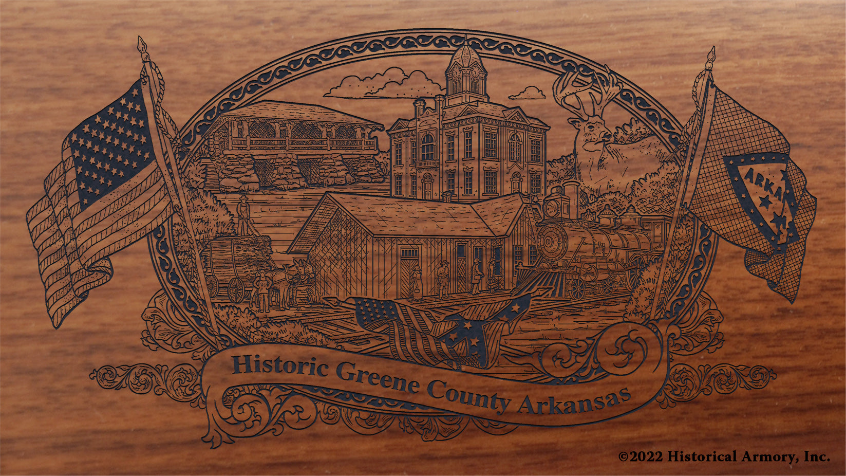 In honor of your county's rich historical legacy, Historical Armory is proud to present the Greene County Arkansas Limited Historical Edition Rifle. Produced on the affordable, American-made Henry rifles, the Greene County Arkansas Limited Historical Edition rifle combines meticulous research, original artwork, and finely detailed engraving to celebrate the history of Greene County. There will only be 25 Greene County Arkansas rifle sets ever produced by Historical Armory. Purchase each model separately or all available rifle models together for a complete limited edition set.