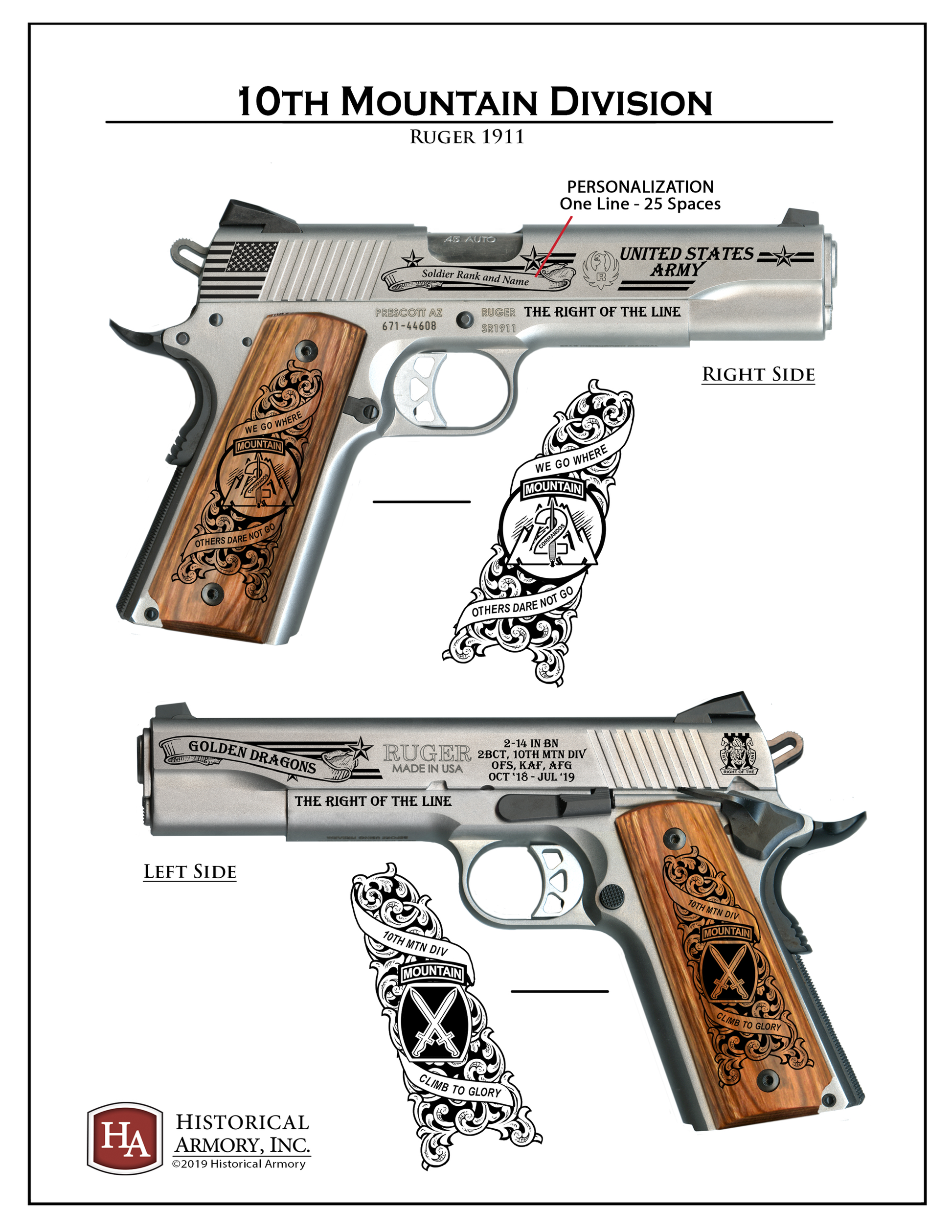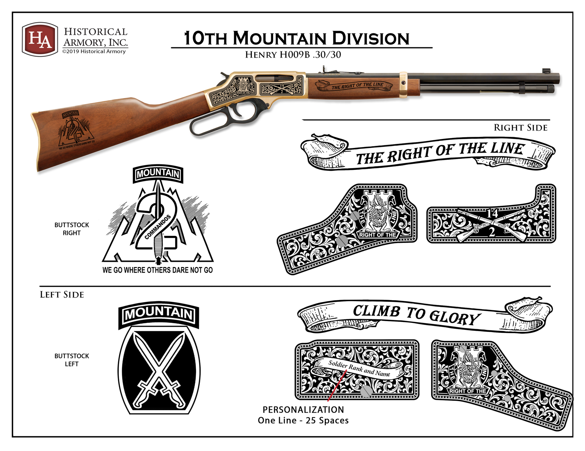 Each 10th Mtn Div Edition is personalized on the Henry left receiver and Ruger right slide at no additional cost. In the area above, type PRECISELY. Take the time to review your entry for accuracy.