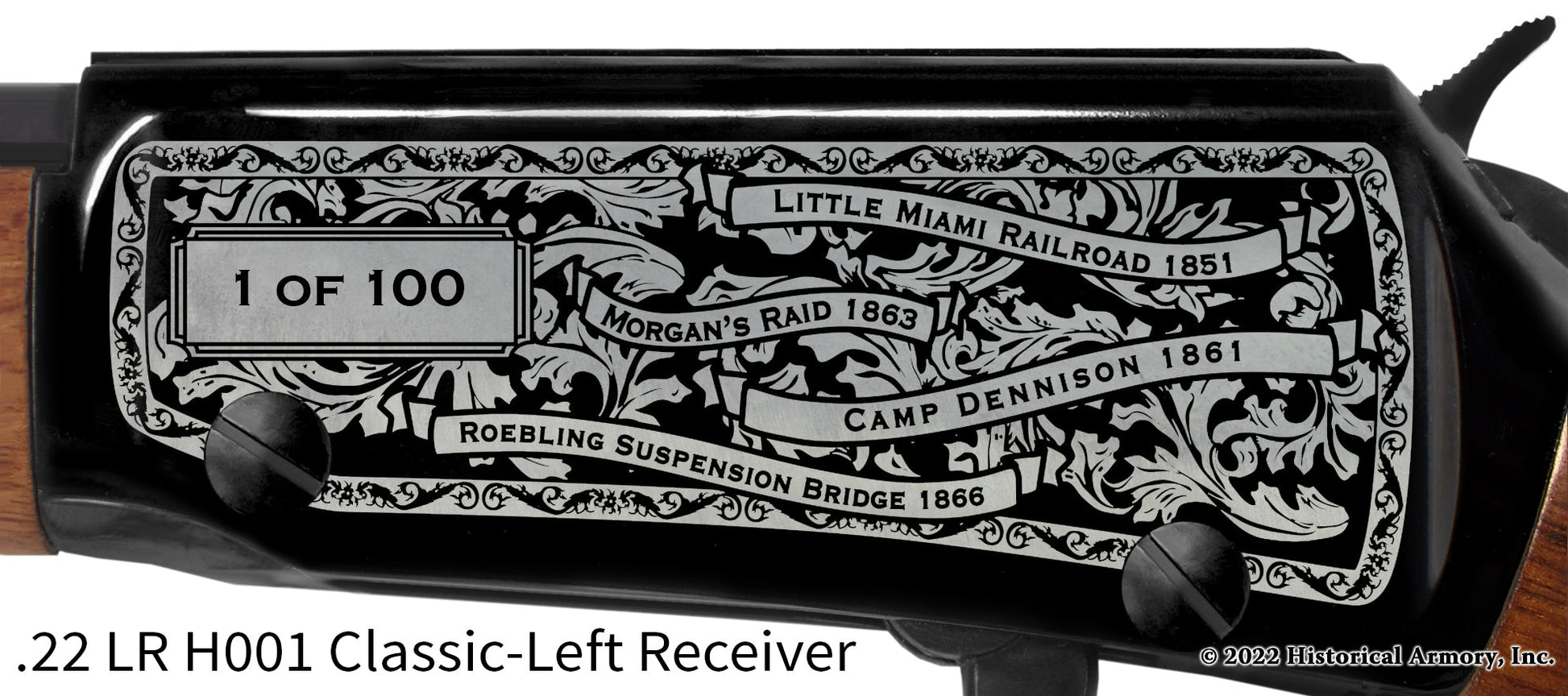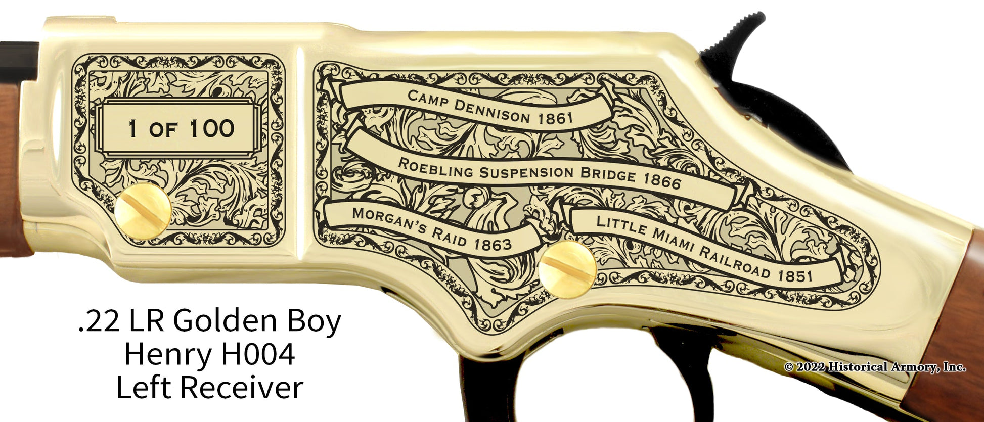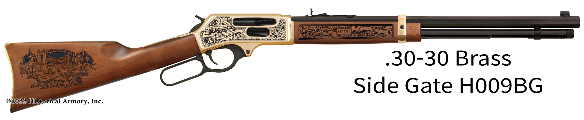 In honor of your county's rich historical legacy, Historical Armory is proud to present the Hamilton County Ohio Limited Historical Edition Rifle. Produced on the affordable, American-made Henry rifles, the Hamilton County Ohio Limited Historical Edition rifle combines meticulous research, original artwork, and finely detailed engraving to celebrate the history of Hamilton County. There will only be 100 Hamilton County Ohio rifle sets ever produced by Historical Armory. Purchase each model separately or all available rifle models together for a complete limited edition set.