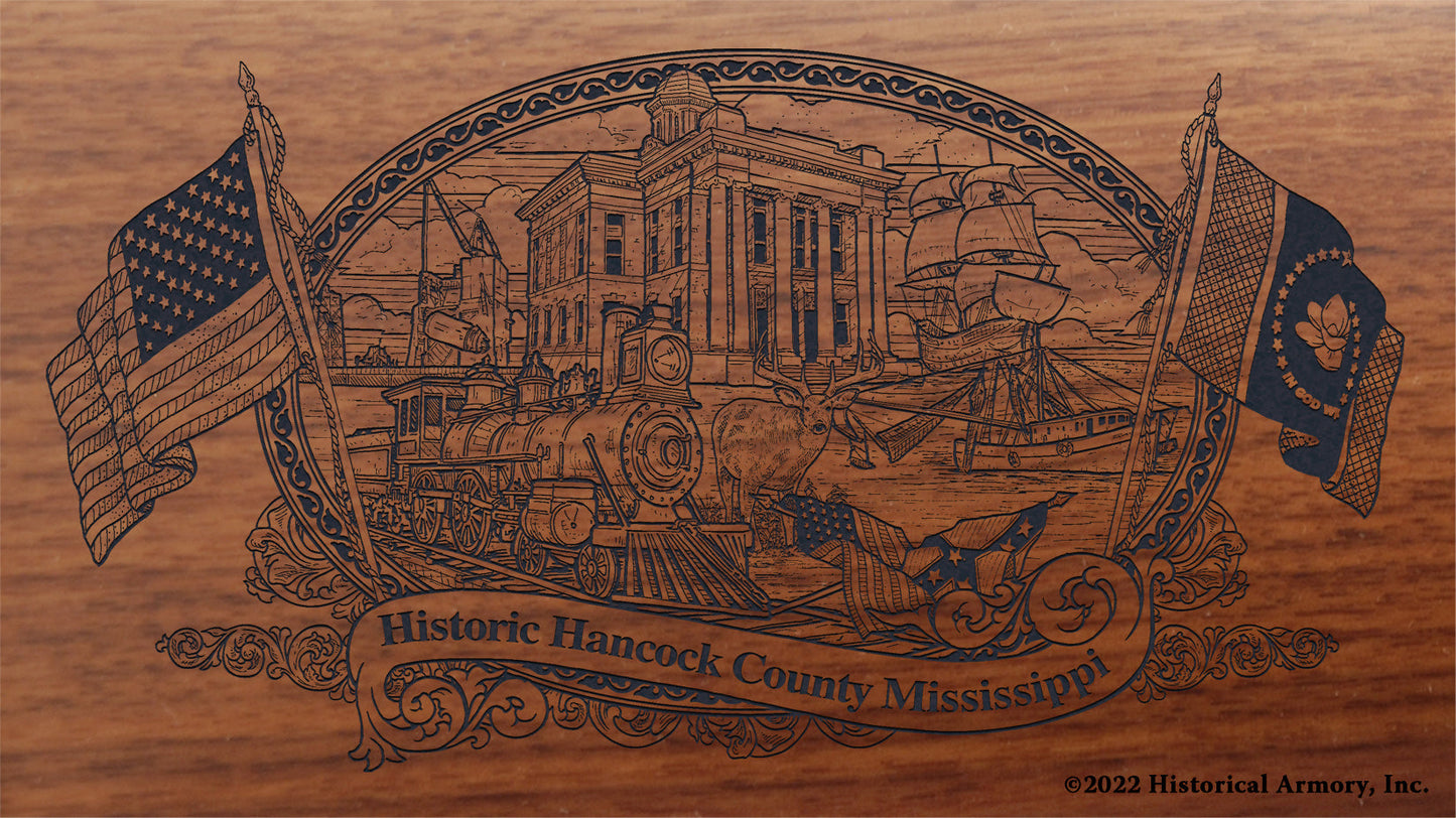In honor of your county's rich historical legacy, Historical Armory is proud to present the Hancock County Mississippi Limited Historical Edition Rifle. Produced on the affordable, American-made Henry rifles, the Hancock County Mississippi Limited Historical Edition rifle combines meticulous research, original artwork, and finely detailed engraving to celebrate the history of Hancock County. There will only be 25 Hancock County Mississippi rifle sets ever produced by Historical Armory. Purchase each model separately or all available rifle models together for a complete limited edition set.