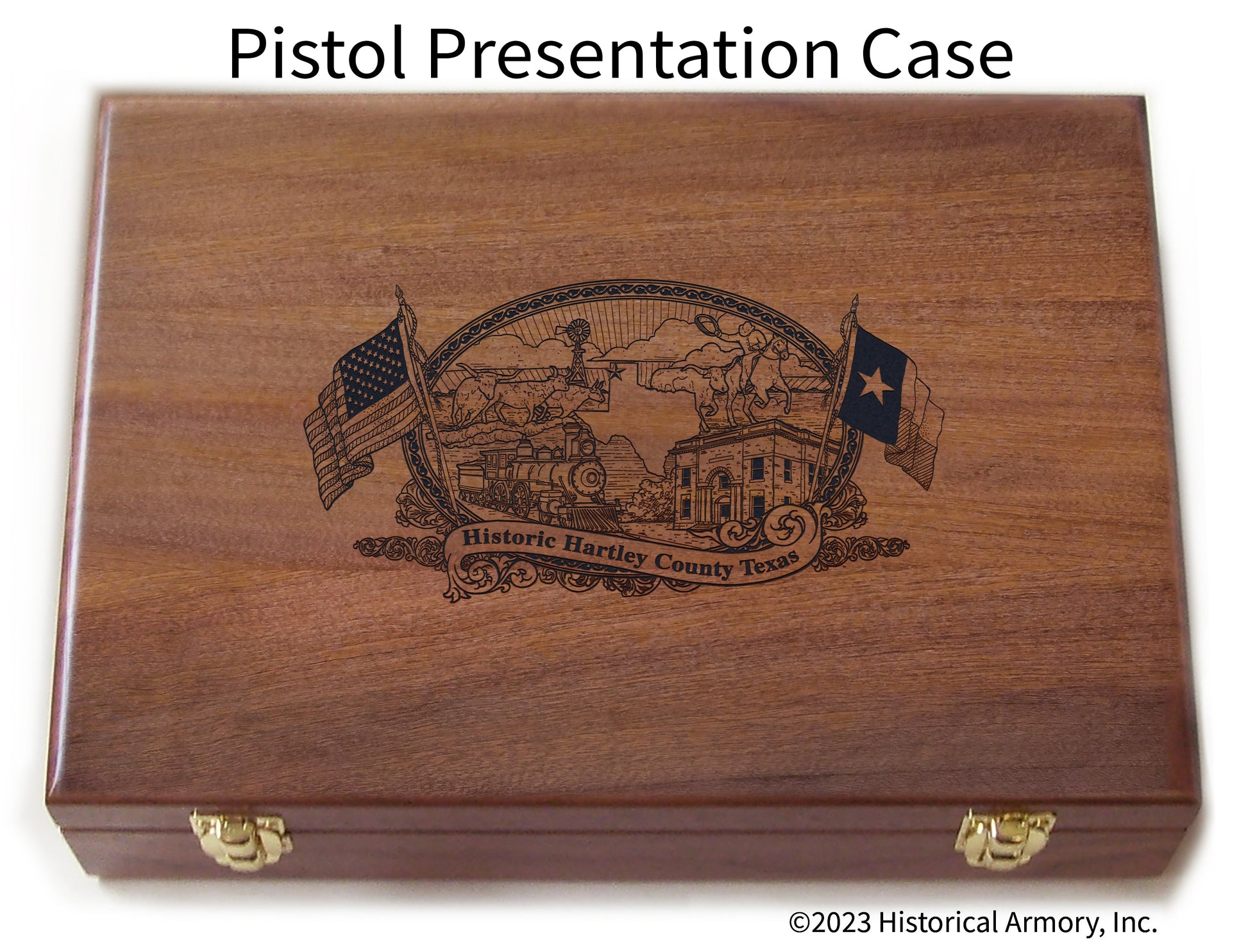 In honor of your county's rich historical legacy, Historical Armory is proud to present the Hartley County Texas 1911 Limited Edition. This special edition combines meticulous research, original artwork, and finely detailed engraving to celebrate the history of Hartley County Texas. There will only be 50 Hartley County Texas pistols ever produced by Historical Armory!