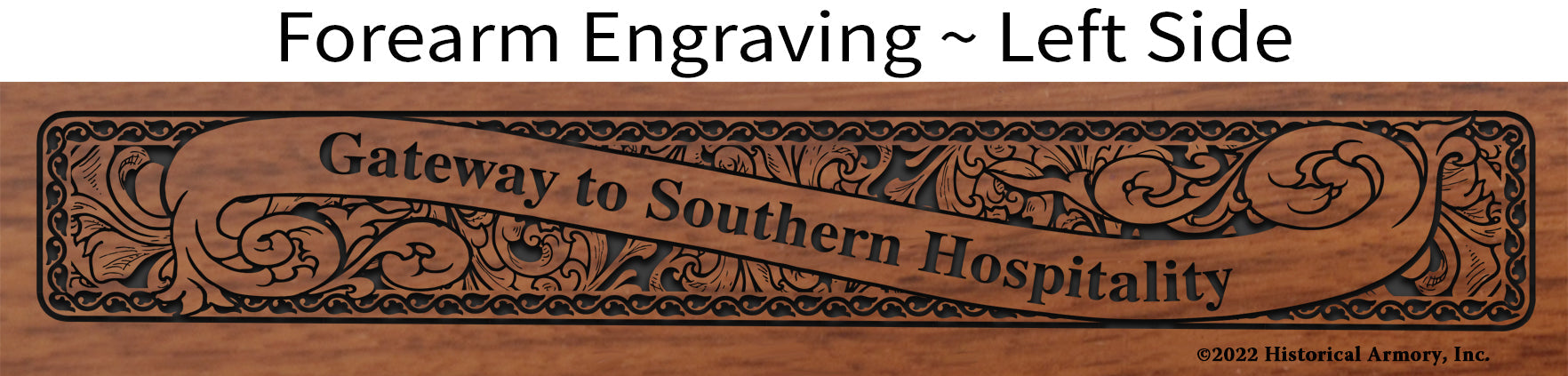 - Detailed engraving on both sides of the American walnut forearm, with the name and establishment date of your county on the right side and your state name and nickname on the left side.