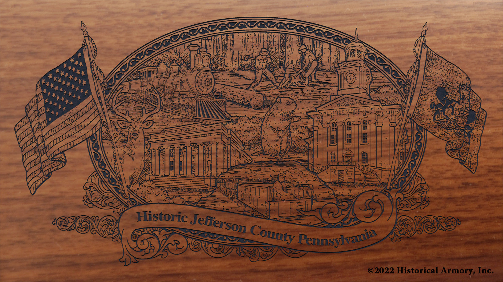 In honor of your county's rich historical legacy, Historical Armory is proud to present the Jefferson County Pennsylvania Limited Historical Edition Rifle. Produced on the affordable, American-made Henry rifles, the Jefferson County Pennsylvania Limited Historical Edition rifle combines meticulous research, original artwork, and finely detailed engraving to celebrate the history of Jefferson County. There will only be 25 Jefferson County Pennsylvania rifle sets ever produced by Historical Armory. Purchase each model separately or all available rifle models together for a complete limited edition set.