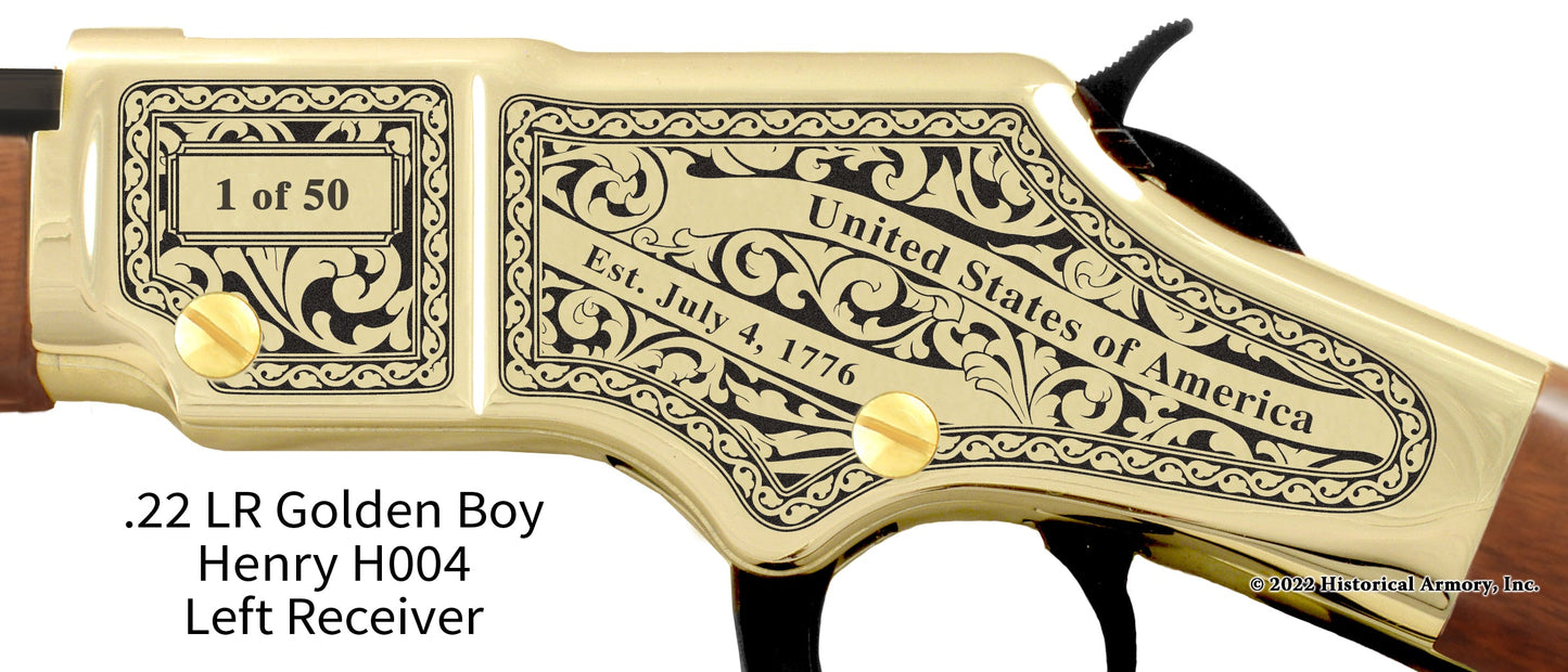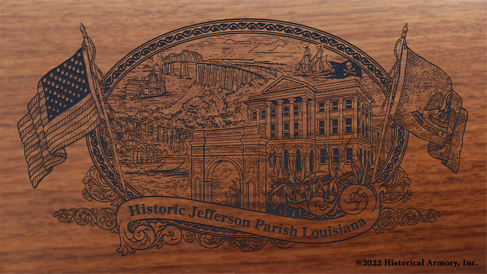 In honor of your parish's rich historical legacy, Historical Armory is proud to present the Jefferson Parish Louisiana Limited Historical Edition Rifle. Produced on the affordable, American-made Henry .22 LR rifle (Model H001 & H004) and .30-30 (Model H009BG), the Jefferson Parish Louisiana Limited Historical Edition rifle combines meticulous research, original artwork, and finely detailed engraving to celebrate the history of Jefferson Parish. There will only be 50 Jefferson Parish Louisiana rifle sets ever produced by Historical Armory. Purchase each model separately or all available rifle models together for a complete limited edition set.